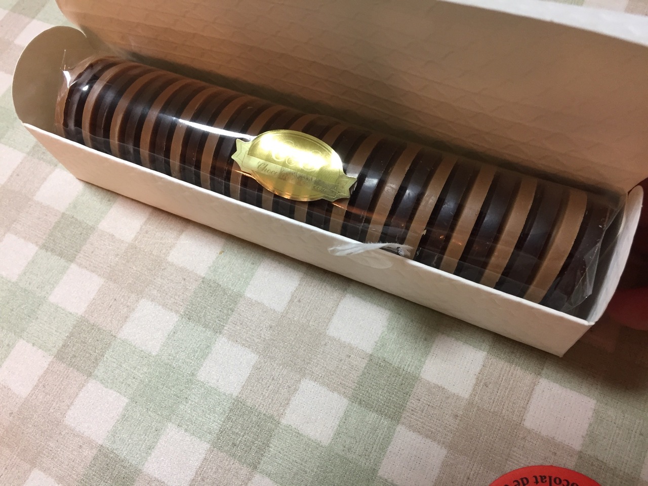 今回はコイン位のチョコレートを購入しました。お味は二種で珈琲チョコとミルクチョコ。