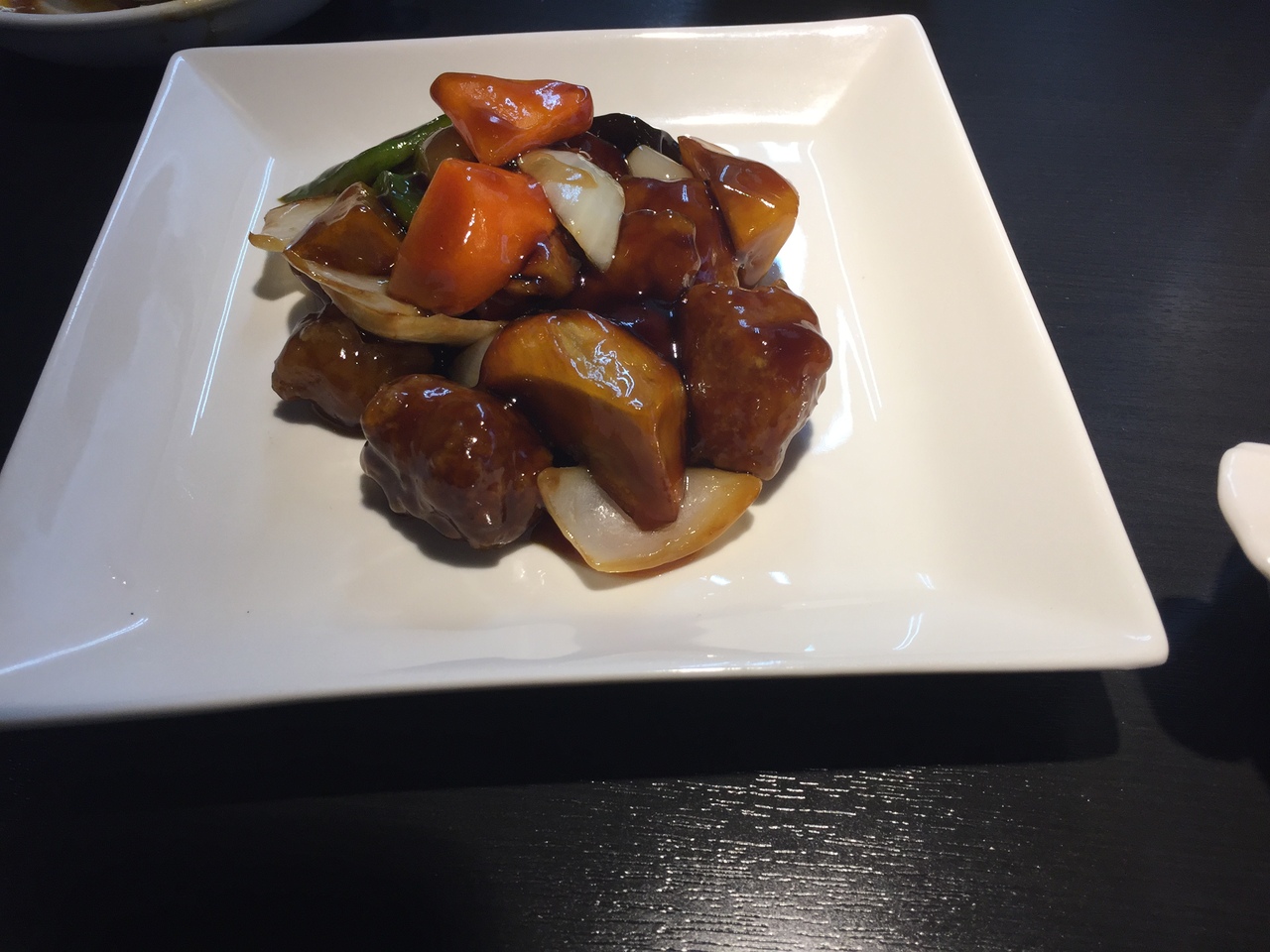 店内は12~3人程の小さなお店でご家族で経営されてるようです。ランチは麻婆豆腐、担々麺、週替りの3種類。今週は黒酢の酢豚でした。
