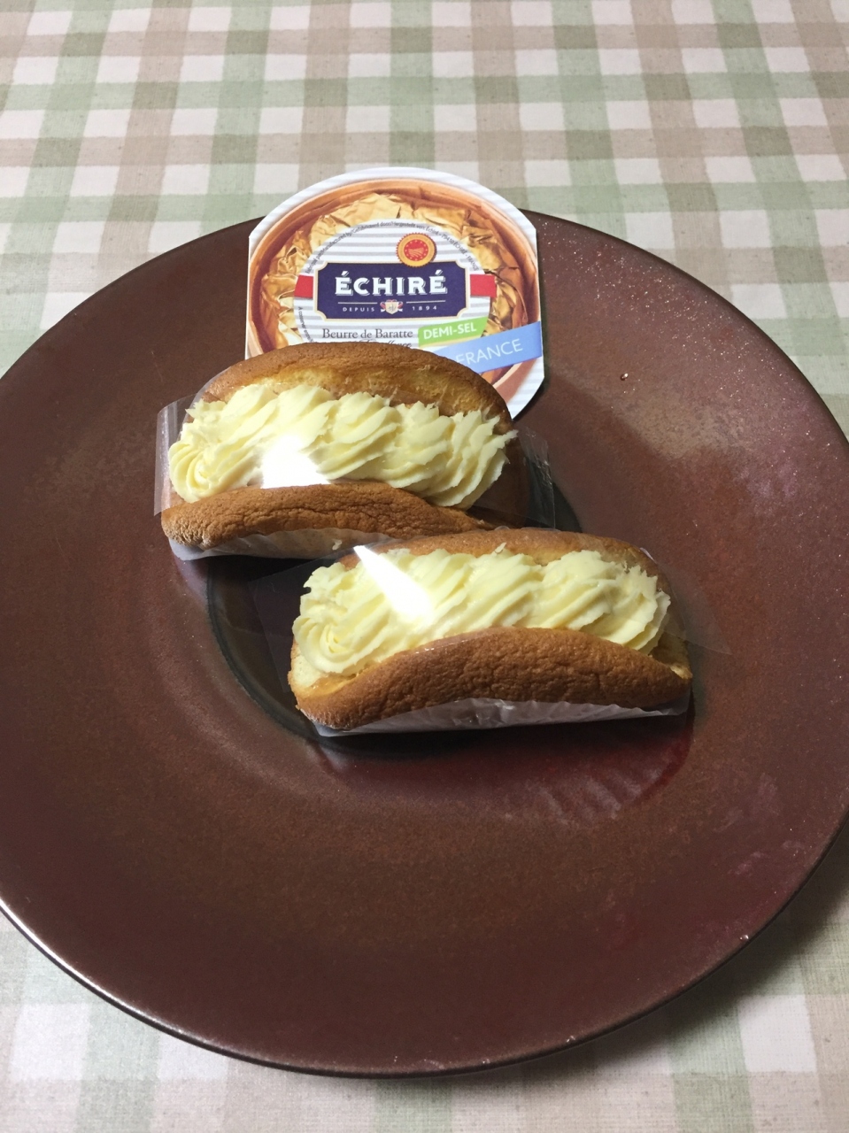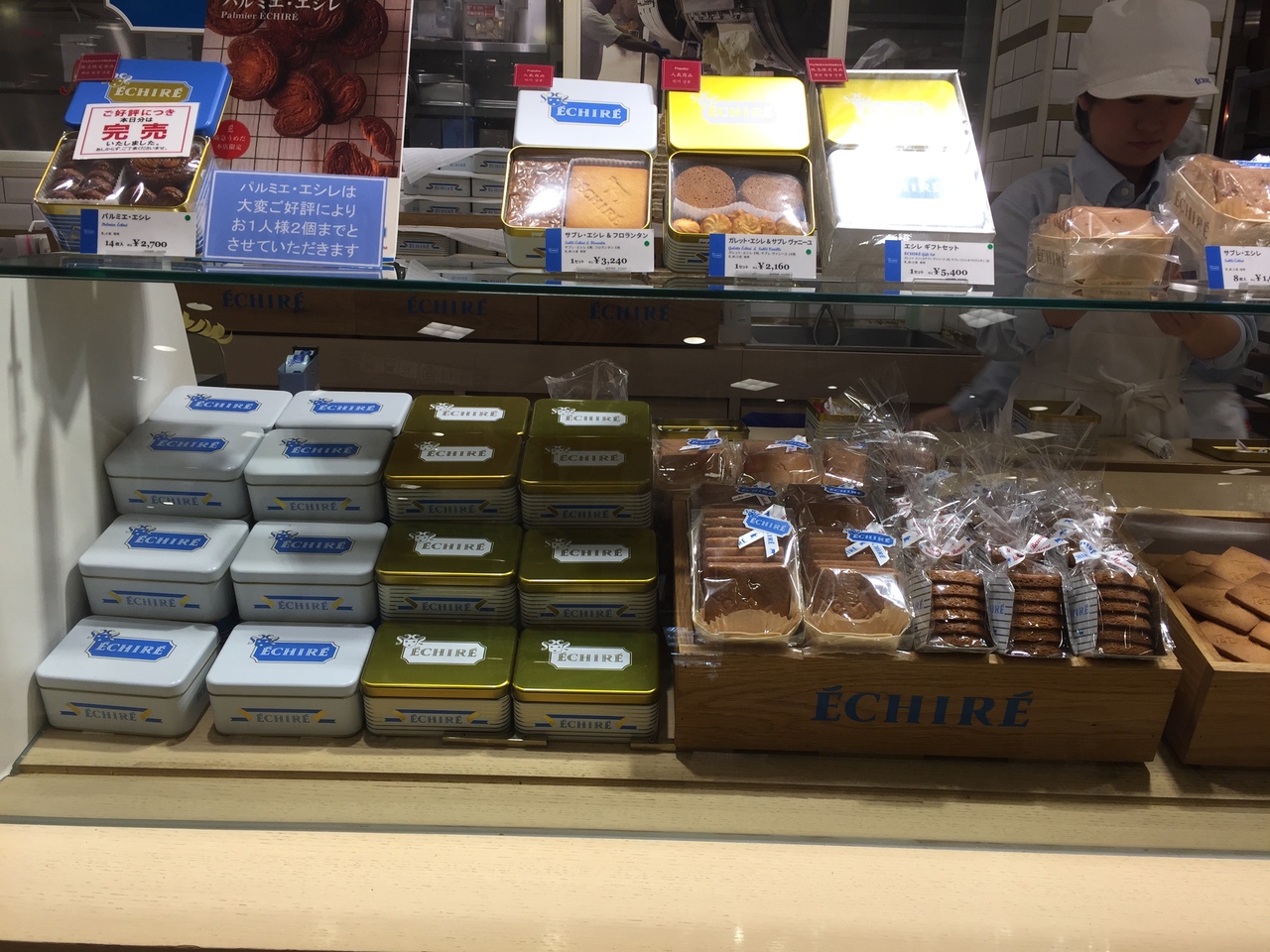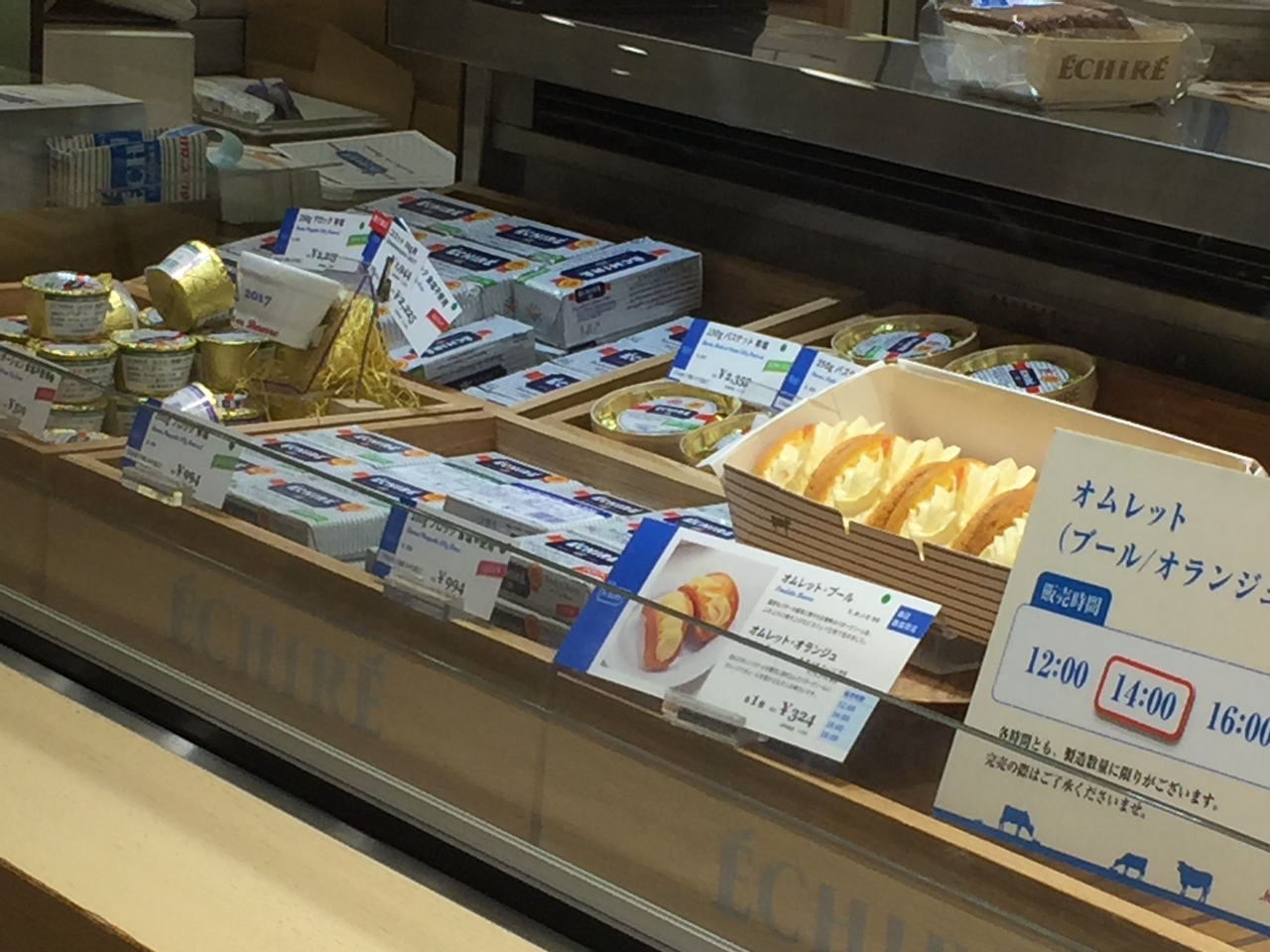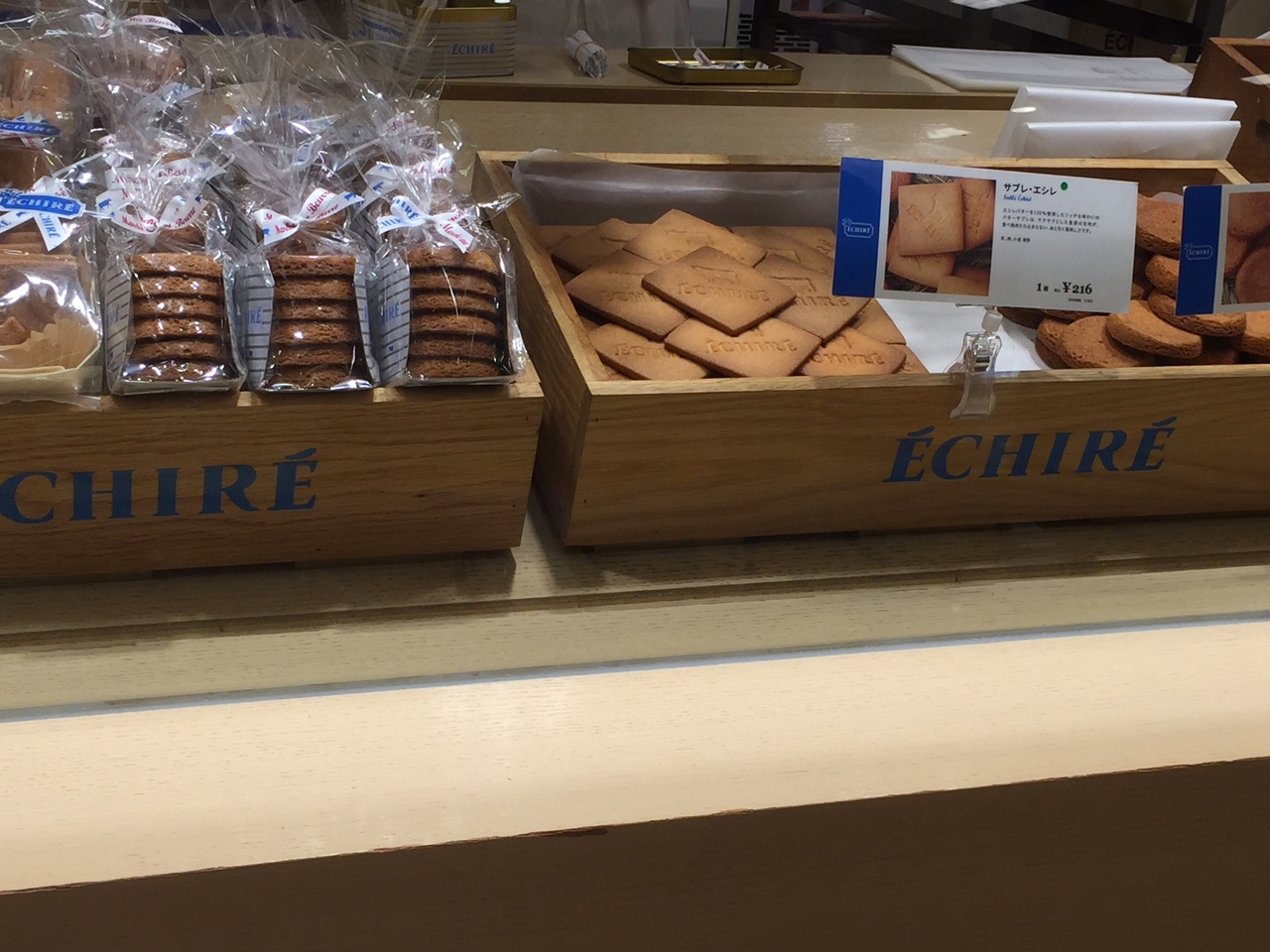 トラベラーさんの旅行記で見た、エシレバターの専門店が東京丸の内にあると知り、行って見たい!食べてみたい!と思ったものの、なかなか東京に行く機会も無く、諦めていたところなんと!梅田阪急の地下にもあるじゃないですか。東京にあるバターケーキは販売してないけど、バタークリームを挟んだオムレットが売ってます。1日に数回販売しているのでお試しに購入しました。バタークリームのイメージを覆すあっさりとしていながら、濃くがあるタイプであっと言う間に完食です。さすがエシレバターを使ったお菓子。並んでる時に試食でエシレのサブレを配ってくれます。