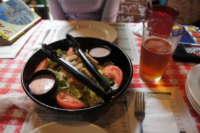 ピザが焼けるまで、サラダをつつきながら、ビールを飲みました。