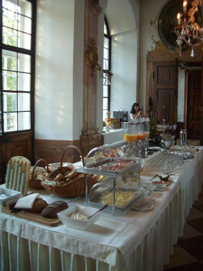 ザルツブルグ音楽祭の期間中に宿泊しました。Superior twinで505ユーロと高かったです。朝食は2人で58ユーロでした。部屋は老舗ホテルの風格があり、バスルームもきれいです。朝食もシャンペンやザッハトルテがあり豪華です。空調もあり暑い日には助かります。