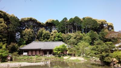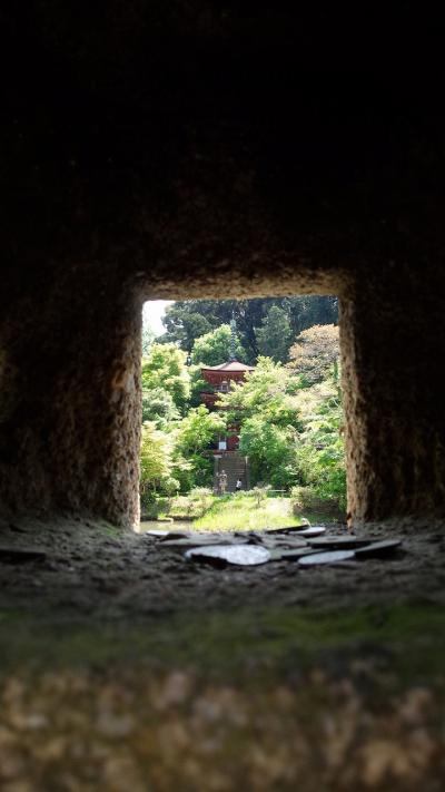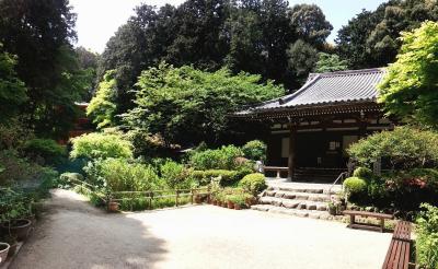 少し歩くと岩船寺に到着。ここも緑が美しい。ちょうど秘仏の弁財天と羅刹天...