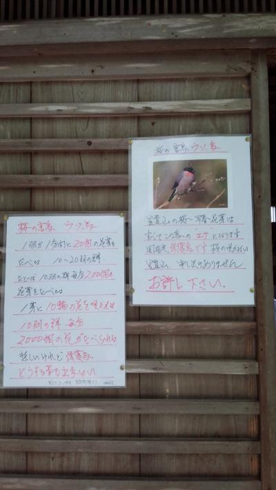 笠置寺は桜で有名なようですが、蕾をウソに食べられてしまい、花が減ってし...