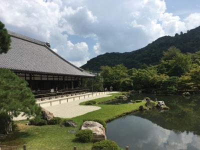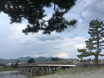 渡月橋の周りには食べ物屋さんやお土産屋さんが並び沢山の人で賑わっています。渡月橋はとても雰囲気のある橋ですね。穏やかな川ではボートを漕いだりしています。紅葉したらとても美しいでしょうね。夏は京都駅周辺より少しだけ涼しかったです。