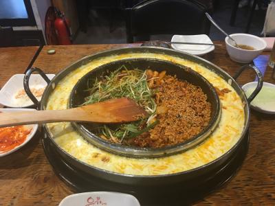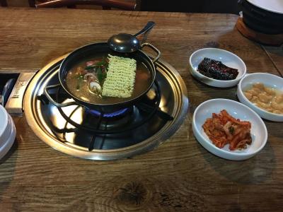 2度目だったので、勝手知ったる・・と思いきや以前よりお店が混んでいて一人で入るのに躊躇しましたが、思いきって入ってみると一人のお客も何人かいて、居心地は悪くなかったです。キムチチゲを美味しくいただきました。おかずのキムチがかなり辛いのですが、それで韓国に来たなぁ、と感じられる気もします。また行きたいお店です。