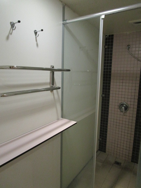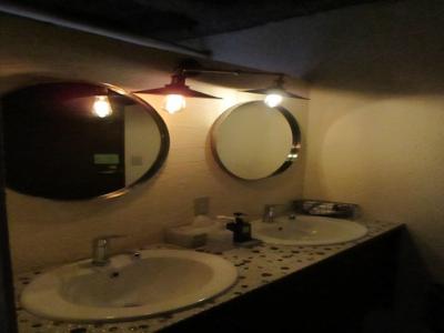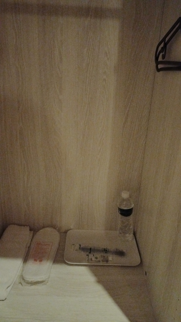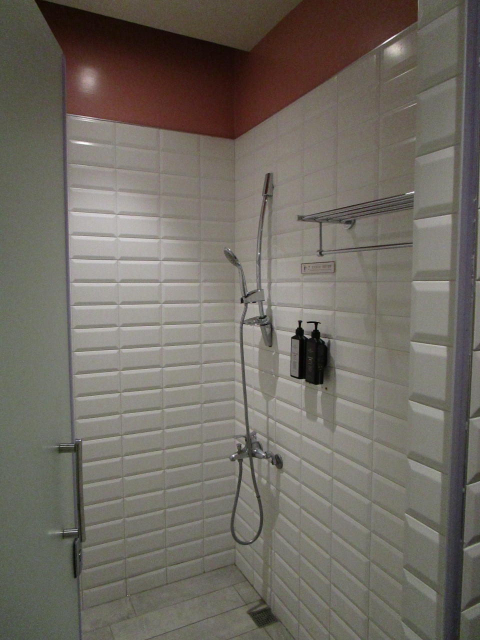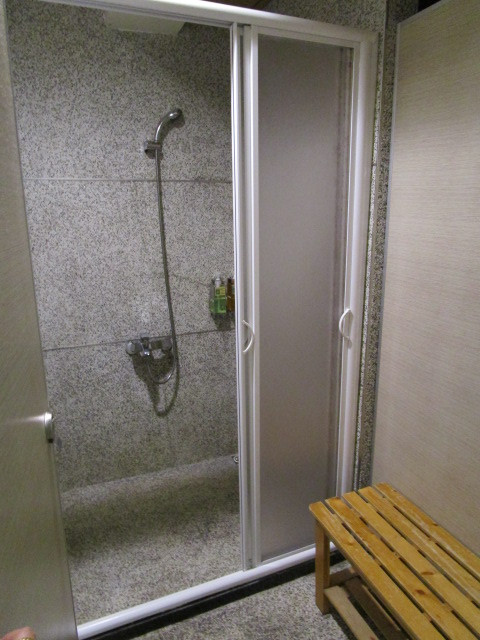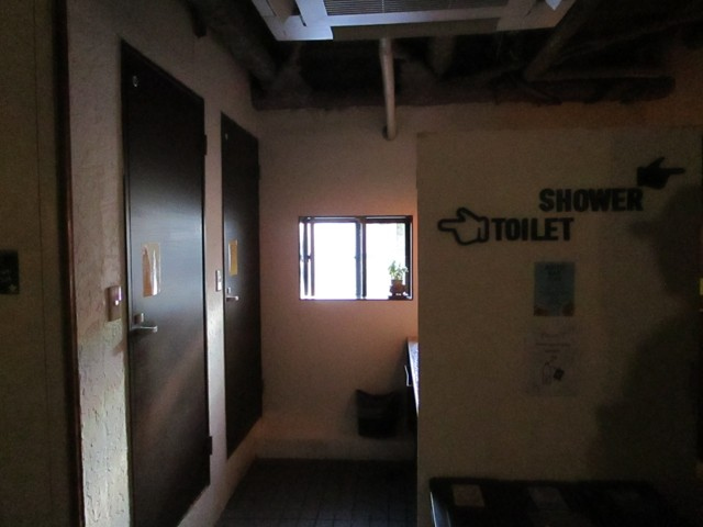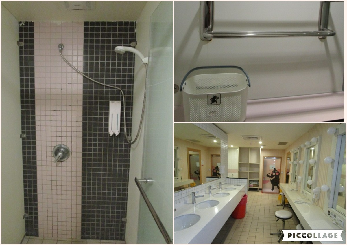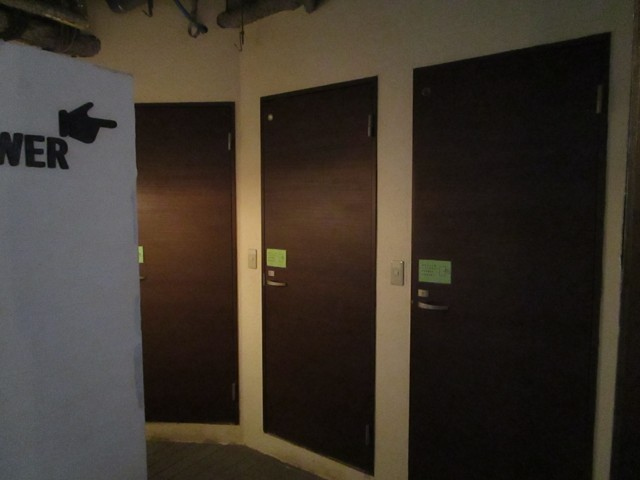 バックパッカーの部屋は部屋の中にシャワー室2機+トイレ1台+洗面所があります。全部床が平らで、シャワーを使うともれなくトイレや、洗面台にまで水が行ってしまってびしゃびしゃになりますので、ゴム草履は履いた方が良いです。カラオケ屋さんが併設ですが、音は全く気になりませんでした。テレビもついてましたが見ないで終わりました。部屋に窓がないのでじめじめとした感じがあります