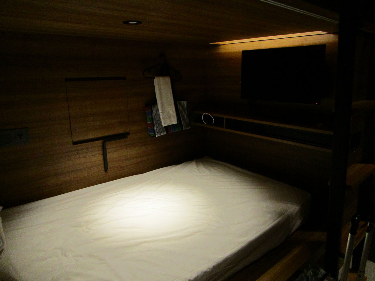 立地は台北橋駅からすぐなので便利なのですが、部屋・ロッカー・各個人ブースに至るまですべて部屋のカードで管理します。個人ブースの鍵の解除がわからず、かなり大変なことになりました。結局、中から声を掛けて、同室の方に解錠のやり方を教えてもらい、事なきを得た感じです。それと水回りが下水道のようなにおいが強く、あまり気持ちのよいものではありませんでした。荷物の預かりも無料の時間が短く、それ以降は金額が上がるので、預けるのをやめました。ちょっと残念な部分が多かったホテルです