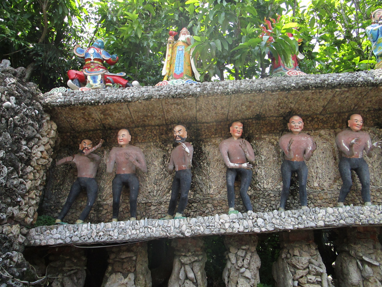 老街見学もいいけど、ちょっと変わった廟が見たい方にお勧め。ただしバスの本数が少ないので要注意です。貧しい農家に生まれた黄さんのある日の夢に出てきたお告げにより、自らの財で作った廟です。畑とお墓の中にぽつんと出てくる廟。中は手作り感満載の部分あってなかなか面白い。地下へ延びる階段を降りると、不思議な音楽が流れる回廊へ。貝殻で作った廟なので、見ごたえもあります。