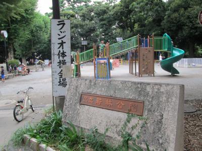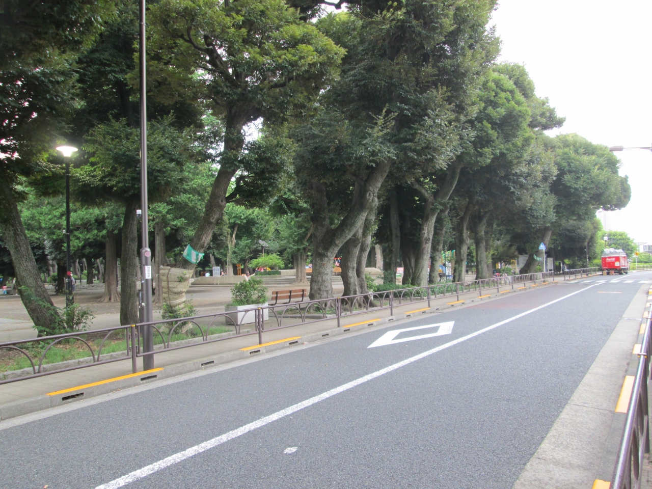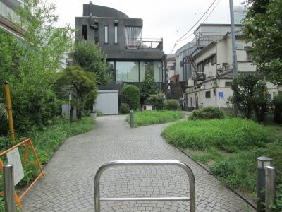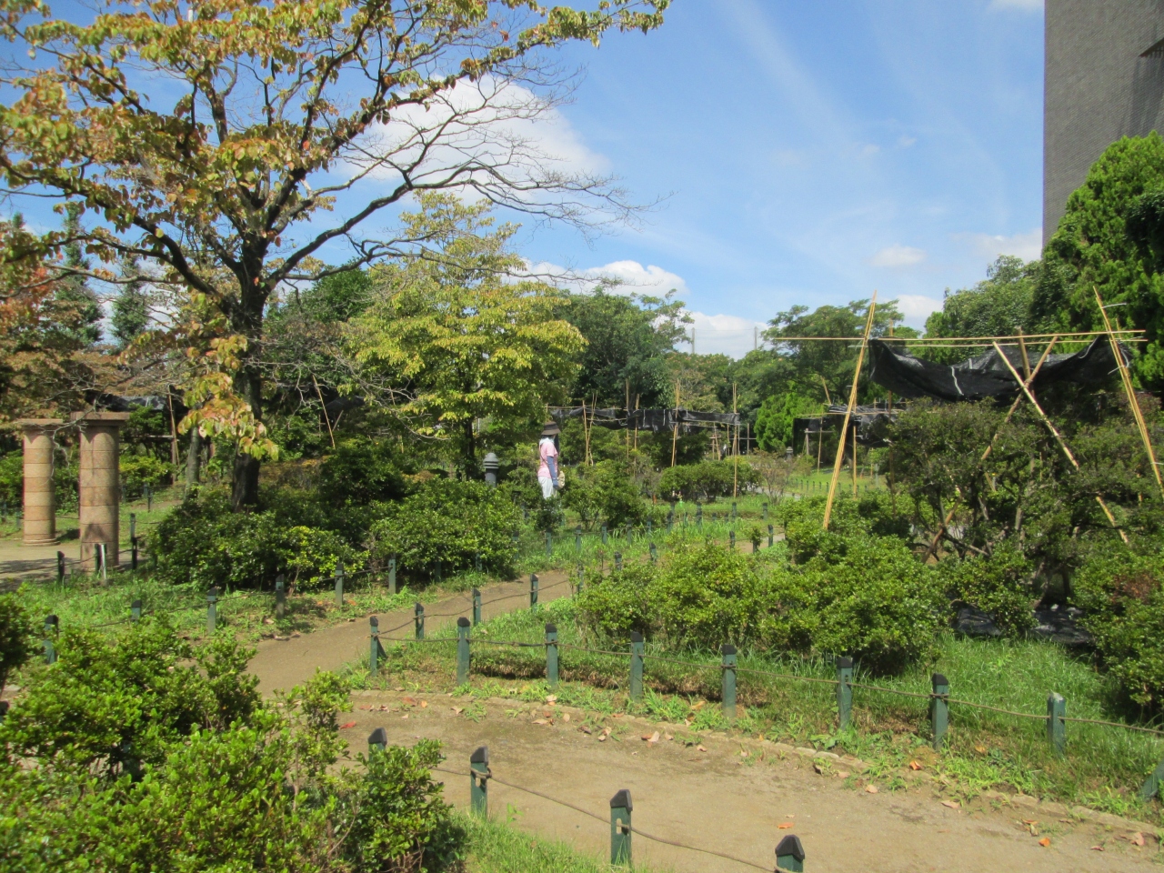 江戸時代この辺りは武家屋敷中心の街が形成されました。武家屋敷をイメージして和風庭園(漆喰壁もその一つ)として整備する。広場での球技は禁止、自転車乗り入れ禁止、遊具は無し、ベンチも少ない、何の目的で作られた公園でしょうか? 和風庭園であるので、東屋があるのですが、当日は工事中でアクセスもできませんでした。和風と言っても、門柱、漆喰壁、東屋だけで他には和風を感じるものはありませんでした