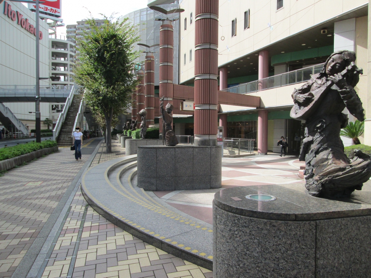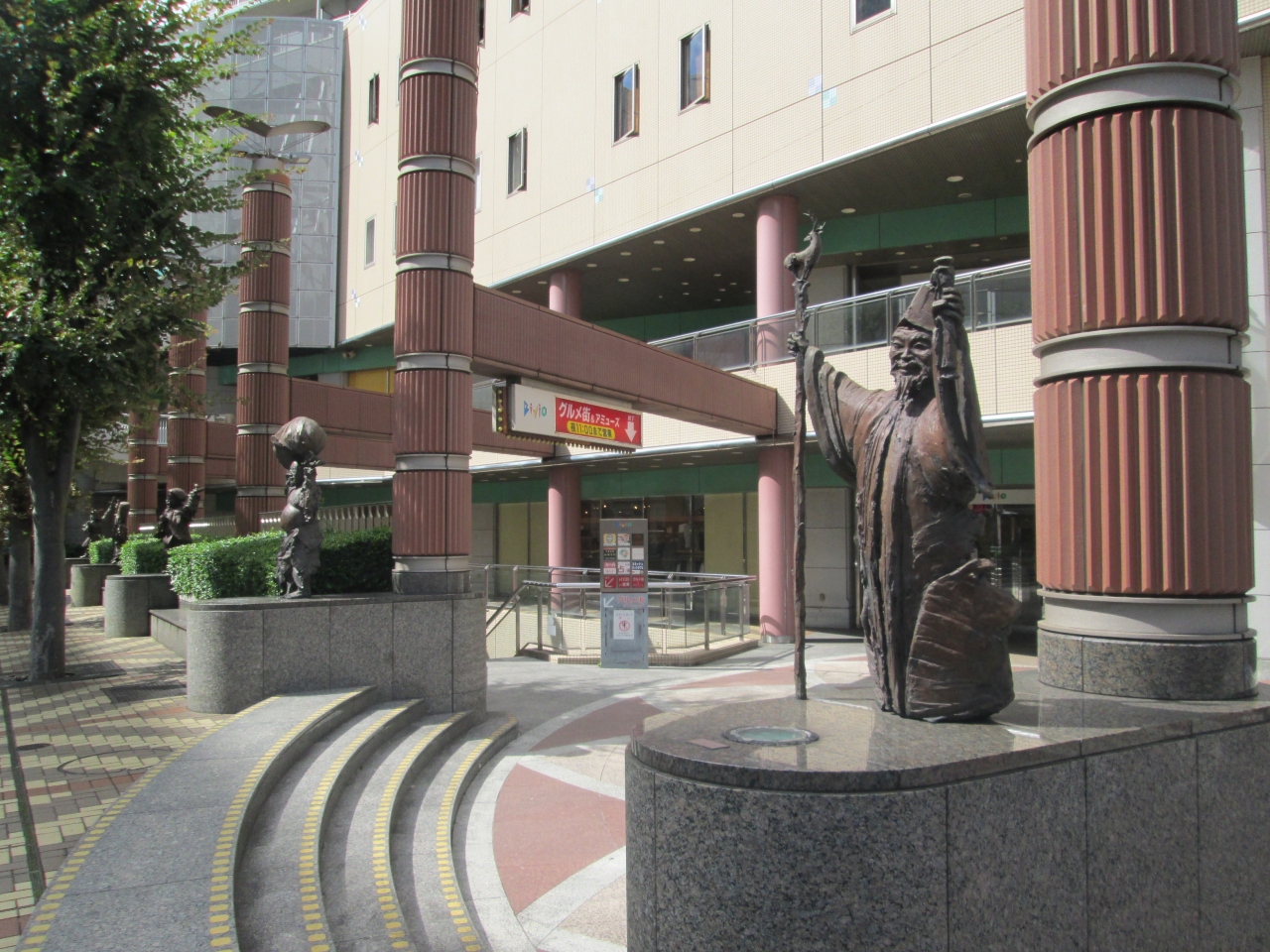 JR赤羽駅西口から徒歩1分の所にある商業施設です。地下は主にレストラン、2~3階は店舗、4階は文化センターが入っています。ショッピングセンターの前にユニークな七福神像が置かれています。釣り竿と鯛の恵比寿天、小槌を持つ大黒天、兜を被り、宝棒を持つ毘沙門天、琵琶を持つ弁財天、太鼓腹と袋を持つ布袋孫、長い額と鶴亀の福禄寿、鹿、桃を持つ寿老神(ちょっと分かりにくいですが杖の先に鹿が乗っています)、それぞれの特徴を表わした像で、弁財天(演奏に夢中になり、笑顔を忘れた?)を除き笑顔で迎えてくれます。ほんの20Mほど歩くだけで赤羽七福神巡りができます