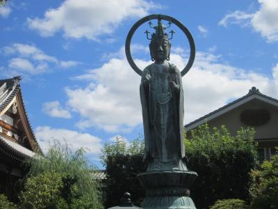 浄土宗の一寺、創建は不詳、鎌倉時代、開基は石渡民部少輔保親、開山良忠上人、本尊は阿弥陀如来像です。山門を潜ると、保存樹木スダジイ、正面に身の丈10Mの大聖観音像、本堂、閻魔堂跡、頼朝の持仏観音像が祀られている観音堂があります。一階は鉄骨造りの客殿、二階が木造の本堂になっており、大きく聳え立つように立派です。また山門からも見える身の丈10Mの聖観音像に圧倒されます。岩淵は水害に悩まされ続け、水害から守れるようにと、この寺の住職が浄財を募り、建立された観音像です