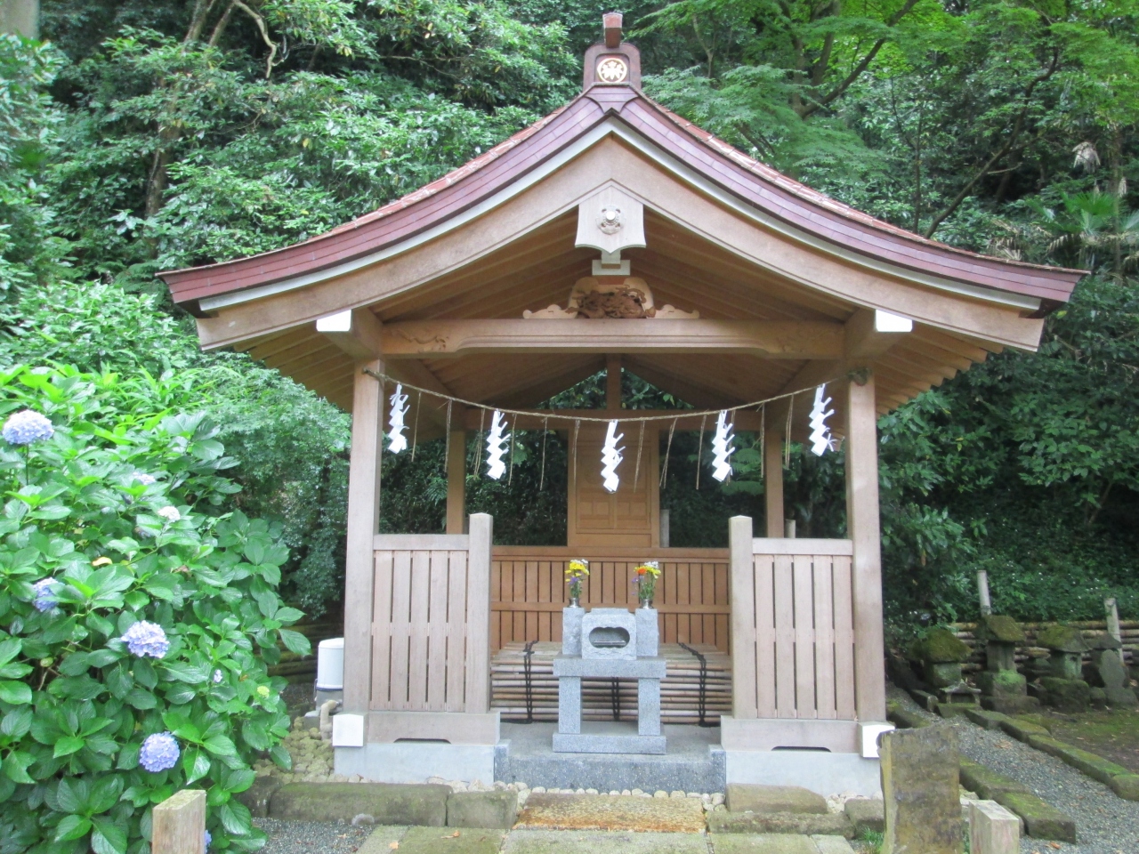 安国論寺から南へ20M程行った先の石段の上にあります。由緒は分かりませんが、鳥居、大黒堂、庚申塔がある小さな社です。大黒堂の中に石造の大黒様が安置されています。大黒堂の社殿には小槌、キリン、袋等の見事な彫刻が施されていて驚きました。また庚申塔は猿田彦大神や青面金剛の文字のもの、三猿(一基は一猿)の上に青面金剛が乗っている像のもの、何種類かの歴史を感じさせる庚申供養塔が見られ勉強になります