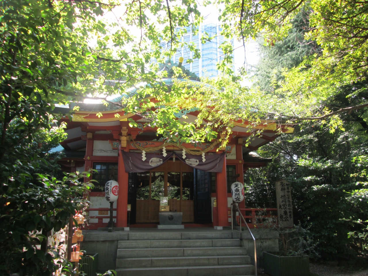 ゆやじんじゃと読みます。増上寺の山内東北部にあります。創建は1624年、増上寺第十三世正誉廓山上人が寺鎮守として、東北の鬼門として勧請、ご祭神はケツミコノオオカミ、大己貴命、イザナギノミコトです。鳥居を潜ると、左にやたがらすが描かれた手水鉢、正面に社殿があります。やたがらすは熊野大神(スサノオノミコト)に仕える存在として信仰され、熊野三山のシンボルともされる。日本サッカー協会のシンボルにもなっています。熊野の名が付く神社を十社以上訪れていますが、熊野本宮大社以外では見たことがありません