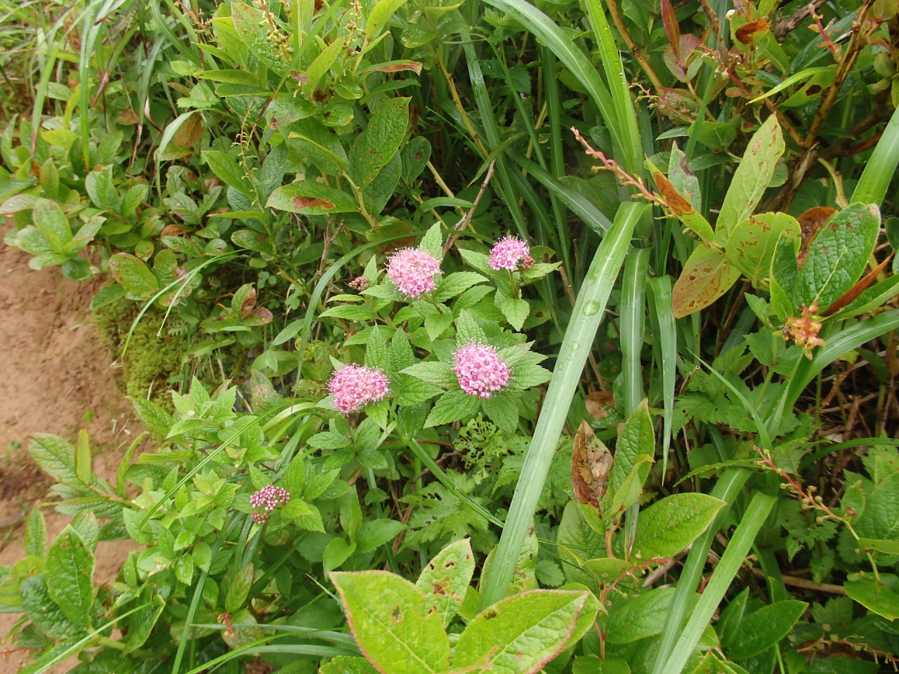 ニッコウキスゲで有名な霧降高原ですが、残念ながら終了していました。霧降高原レストハウス前から木段を登り始めます。小丸山山頂手前の展望台のところまで1445段の長い木段が続きます。木段のぼりが苦手な人には、木段を巻くように遊歩道が木段の中間処までついているので、こちらを取ると楽になります。遊歩道や木段の両側にはシモツケソウ、シモツケ、オカトラノオ、リンドウ、ツリガネニンジン、ホツツジ、ヨツバヒヨドリ、キオン等10種以上の野花が見られました。天気が曇りと霧が出て展望台からの眺望は良くありませんでしたが、野花が十分カバーしてくれました。野花ファンにはお勧めです