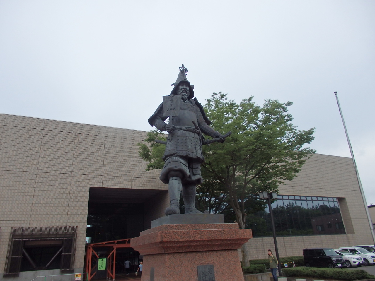 に南部氏より津軽地方での独立を果たし、豊臣秀吉から領有を認められました。知将(関ケ原の戦いでは、自分と三男は徳川側へ、長男は三成側へ)として有名ですが、知だけではなく、お顔を見ると心の強い、勇猛果敢な武将に見えます。立派な髭と兜の前立物(兜の前に付けているもの)の錫杖が印象的です