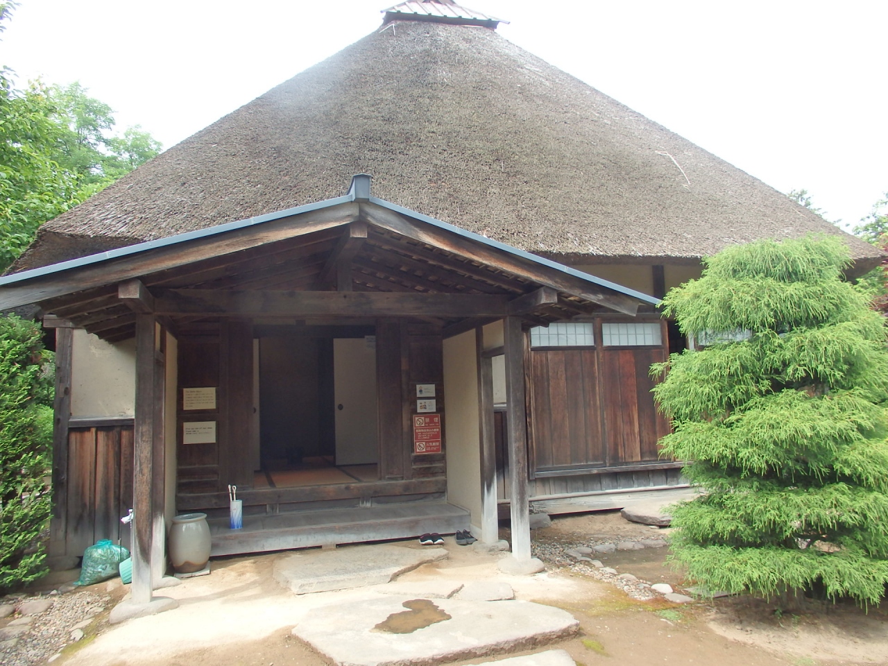 北の堀沿いの道より1本北側の道が伝統的建造物群保存地区で、そこにある中・下級武士・医科の旧住宅を見学する。旧梅田家住宅は江戸末期に建てられた武士の住宅です。前の2軒(伊東家、笹森家)と異なり、茅葺屋根です。外から見ると趣が有って良いのですが、天井が無いので、夏は涼しいけれど、冬の暖房は非効率的だなと考えてしまうロマンの無い私です