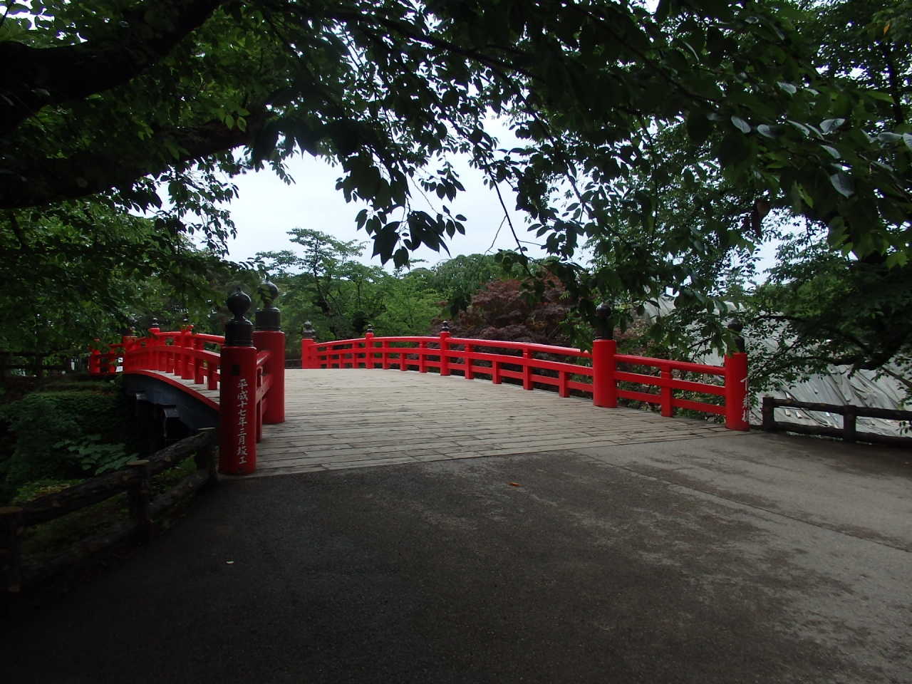 江戸時代、弘前藩津軽氏四万七千石の居城です。二の丸から本丸に入る時渡る橋です。藩主以外の藩士はここで馬から降りるよう定められていました。橋の名はこのことに由来するといわれています。築城当時は敵が攻めてきたとき、直ぐ壊せるように架橋でしたが、江戸時代末期に架け替えられました。朱色が鮮やかな、印象的な橋です。今は天守移動中で天守は見えませんが、古いブログを見ていると、桜の季節にこの橋から見上げる天守は素晴らしい光景で羨ましいです。絶好の写真撮影スポットです。早く天守が戻されるいいですね