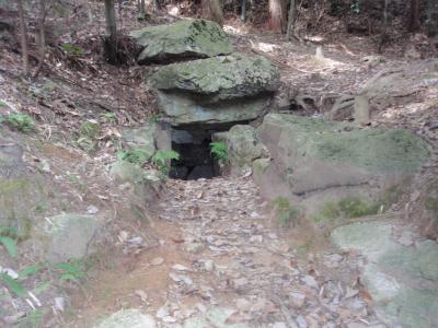 出町柳駅を出発し、茶山山頂(180M)で京都一周トレイル東山コース(以下京都トレイル)に合流し、石鳥居で京都トレイルと別れ、歩き始めて3時間一本杉に到着(標高600M)。展望が開け琵琶湖も見えます。下山は崇福寺跡、百穴古墳群を経由してJR大津京に下りました。百穴古墳群は石室の入口が穴のように多く見えるところから名付けられました。本日のコースは標高差520M,歩行距離16Kmと長いですが、一部の木段急登りが、急下りを除いて歩き易い登山道でした。ただし、下山した後、最寄り駅までの舗装道歩き45分は、気温34度と暑くバテました