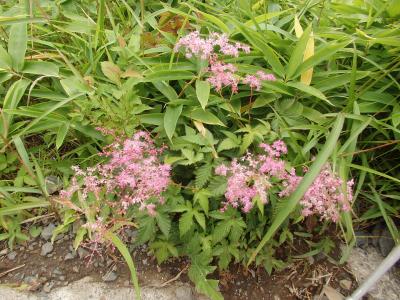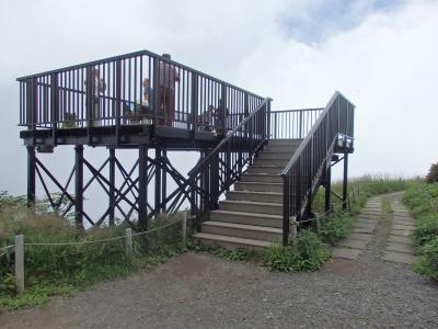 霧降高原ハイキングコース(丸山コース)を登る途中、小丸山展望台に寄りました。1445段の割と急な木段を登ると小丸山山頂少し手前に展望台があります。天気が良ければ眺望はあるのですが、曇りの天気と霧降高原と呼ばれるだけの涌いてきた霧により遠くは見えませんでした。しかし、木段や遊歩道の両脇に咲いているシモツケソウ、シモツケ、オカトラノオ、リンドウ、ツリガネニンジン、ホツツジ、ヨツバヒヨドリ、キオン等10種以上の野花が眺望の代わりをしてくれました。また木段を登るのが苦手の人には、木段の途中まで、木段を巻くように遊歩道があるので、少しは苦手を緩和してくれます