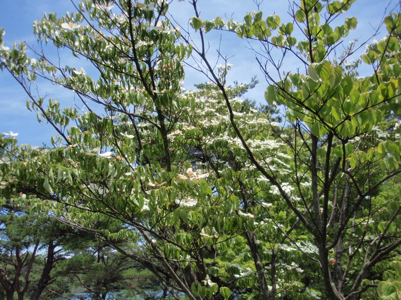 阪急芦屋川駅より、数回のアップダウンを経て2時間強、奥池園地に到着しました。奥池の隣には奥池あそびの広場があり、広場には屋根やコンロ付きのバーベキュー用のデッキハウスがあり、多くのグループの人が楽しんでいました。芝生広場、遊具、グランドゴルフ場等もあり親子で楽しめる施設もそろっています。また近くにはハイキングコースもあります。子供連れの家族にはお勧めの施設です。本命のヤマボウシは最盛期を過ぎていましたがまだ見られる状態でした