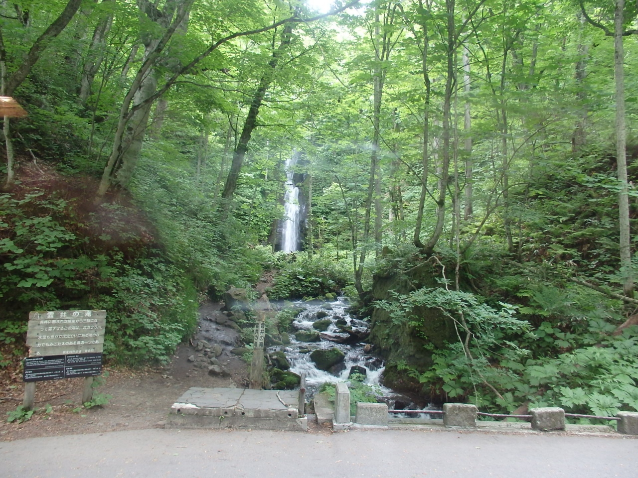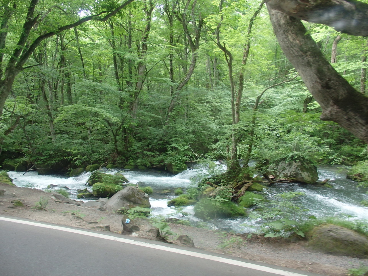 奥入瀬渓流は奥入瀬川沿いの子ノ口から焼山までの14KMの渓流を言い、遊歩道が完備されています。五十数年前の秋に訪れ、紅葉が素晴らしかったことを今でも鮮明に記憶しています。バス道も当時は舗装されていなかったと思います。本日は子ノ口から十和田湖温泉郷まで歩く予定でした。明日は八甲田山登山の予定でしたが、大雨とのことで、急遽八甲田登山を本日実施し、奥入瀬渓流散策はあきらめ、バスで通過するのみでした。雲井の滝、銚子の滝、白布の滝等十数ケの滝、阿修羅の流れ、三乱の流れ等流れが、緑色がきれいな樹木を背景に素晴らしい光景が見られます。秋に再度訪れ紅葉を背景にした滝や流れを見たいものです