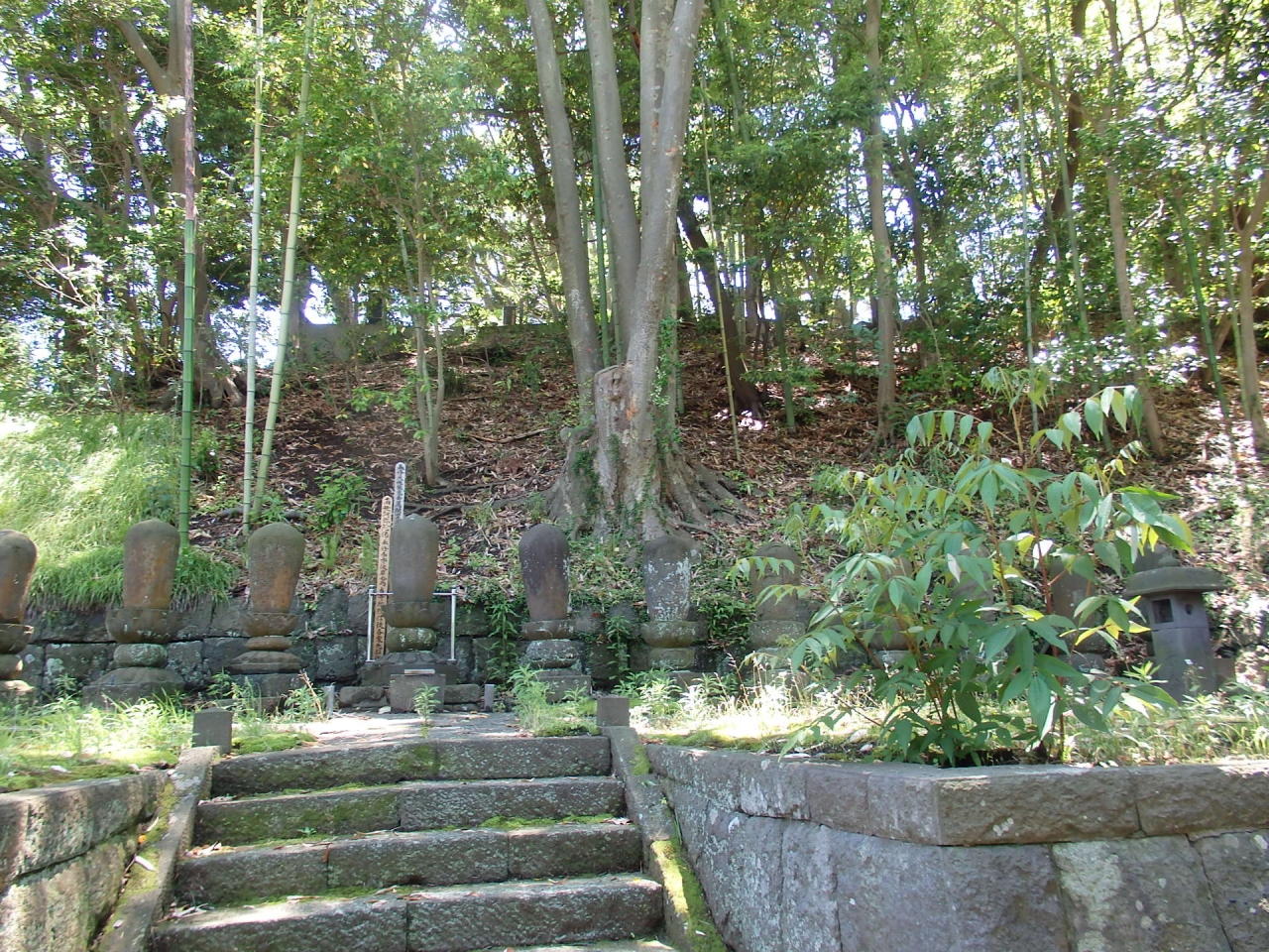 藤沢駅から1時間強のところにあります。常光寺を出て2分程の所に小高い塚が見えました。武蔵坊弁慶の首塚跡といわれています。奥州から帰った弁慶の首実検後、ここに供養された。藤沢市一帯は源義経・弁慶に関係した伝説が多くあるので、それをもとにして当てはめられた感があります。歴史的感慨が湧きません。頂上はお墓になっており、これは先ほどの常光寺の上の方に見えた墓地でした(お墓の方は関係者以外立ち入り禁止です)