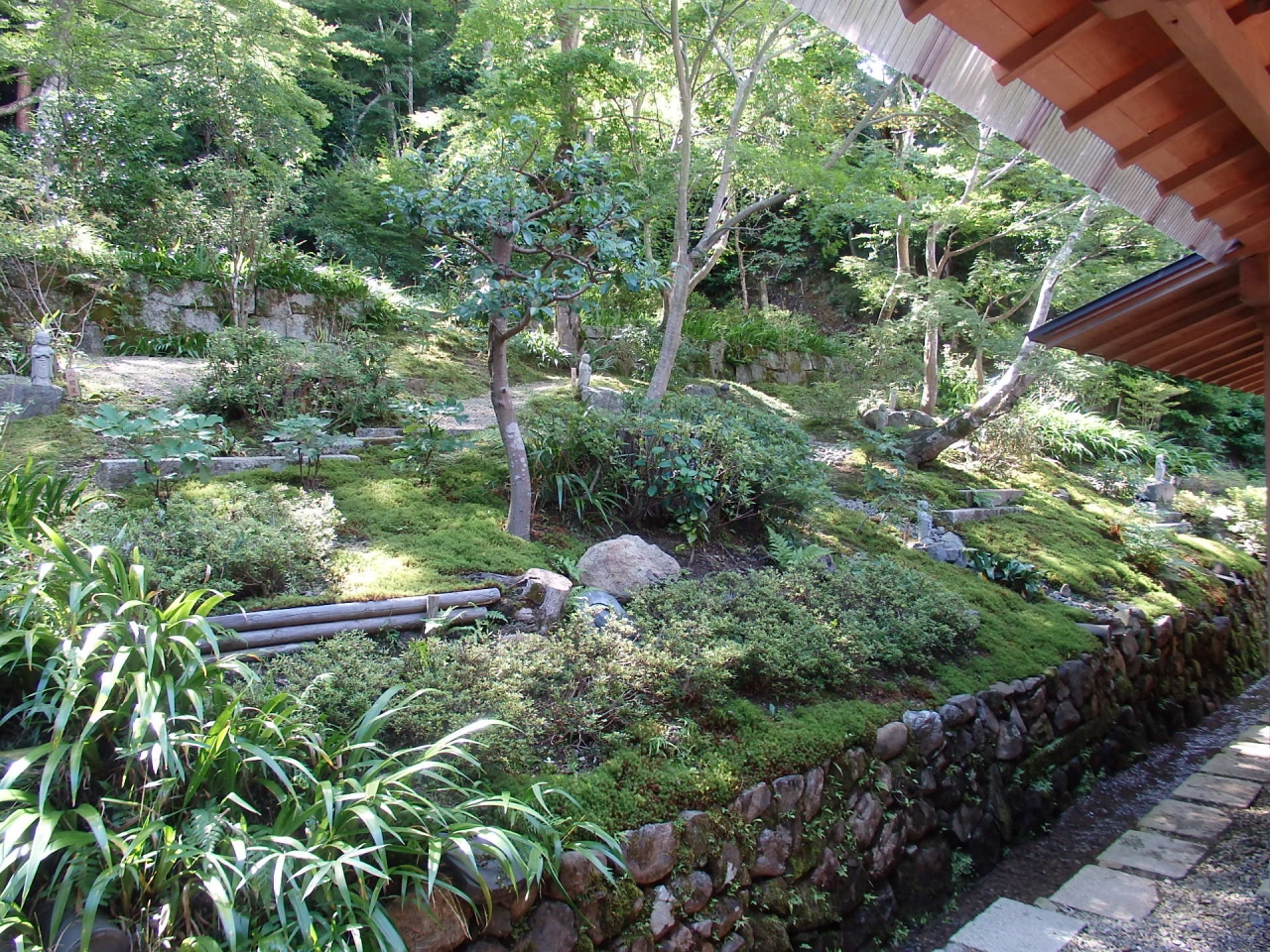 本尊に阿弥陀如来と釈迦如来(国宝)の二尊を奉ってあるところからこの名でよばれています。総門から勅使門の間の「紅葉の馬場」のもみじと苔の緑がきれいで、心が洗われます。当然紅葉も見事でお勧めです。本堂で本尊2尊を拝むことができますが、暗くて少し見にくいです。本堂の裏には六道六地蔵の庭園があります。6つの世界にそれを救済する地蔵が配されているという構図です。今までお目にかかったことない庭園です。一度見てみませんか。本日は真夏日、木陰で小倉山から下りてくる涼しい風に当たって休憩しました。俳優田村高廣が建てた阪東妻三郎の墓がありました