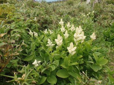 八甲田山登山案内書の多くは、酸ヶ湯温泉から八甲田大岳へ登り、周遊して酸ヶ湯温泉に下るルートが紹介されていますが、我々は登り高低差を少なくするために(400Mほど)、八甲田山ロープウエイを利用しました。最大高低差650Mで、山麓駅から山頂公園駅まで10分で到着します。天気が曇りのせいか、景色はあまりよくありません。しかし山に登らなくても、今の花の季節に山頂駅付近の遊歩道を散策すれば、コバイケイソウ、ゴゼンタチバナ、ツマトリソウ、ウスバスミレ、ナナカマド、チングルマ、イワカガミ等多くの野花を見ることができ、お勧めです。ウイークデーと梅雨と重なりお客さんはほんの僅かでした。