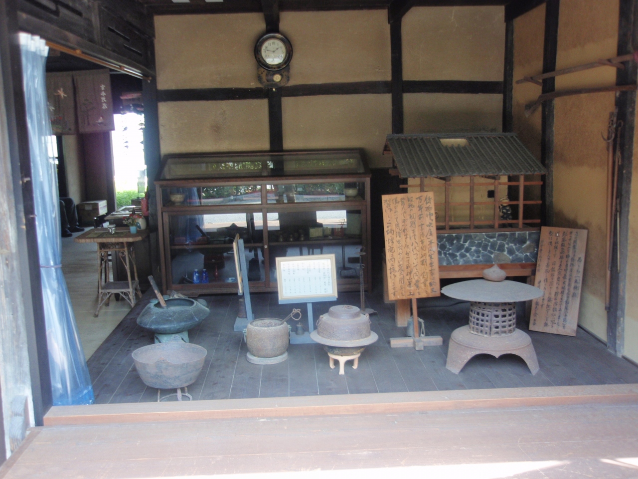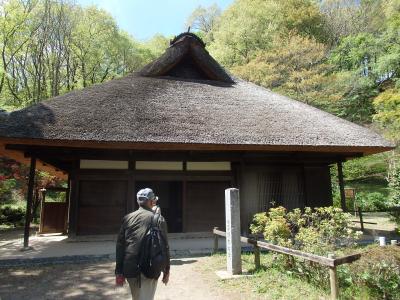 薬師池公園の中に旧荻野家住宅があります。市内にあった茅葺入母屋造りの古民家を園内に移築したものです。薬医門(これも違うところから移築されたもの)を潜ると古民家があります。普段良く見る入母屋造りの古民家は天井が無く、上は茅葺屋根か、物置、蚕だなになっていますが、ここは天井があります。元医院だったので天井があるのでしょうか。また内部には薬や医療器具を置く棚が設けられています。よく見られる豪農の古民家とは違った古民家が見られます