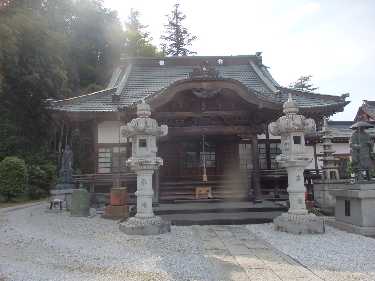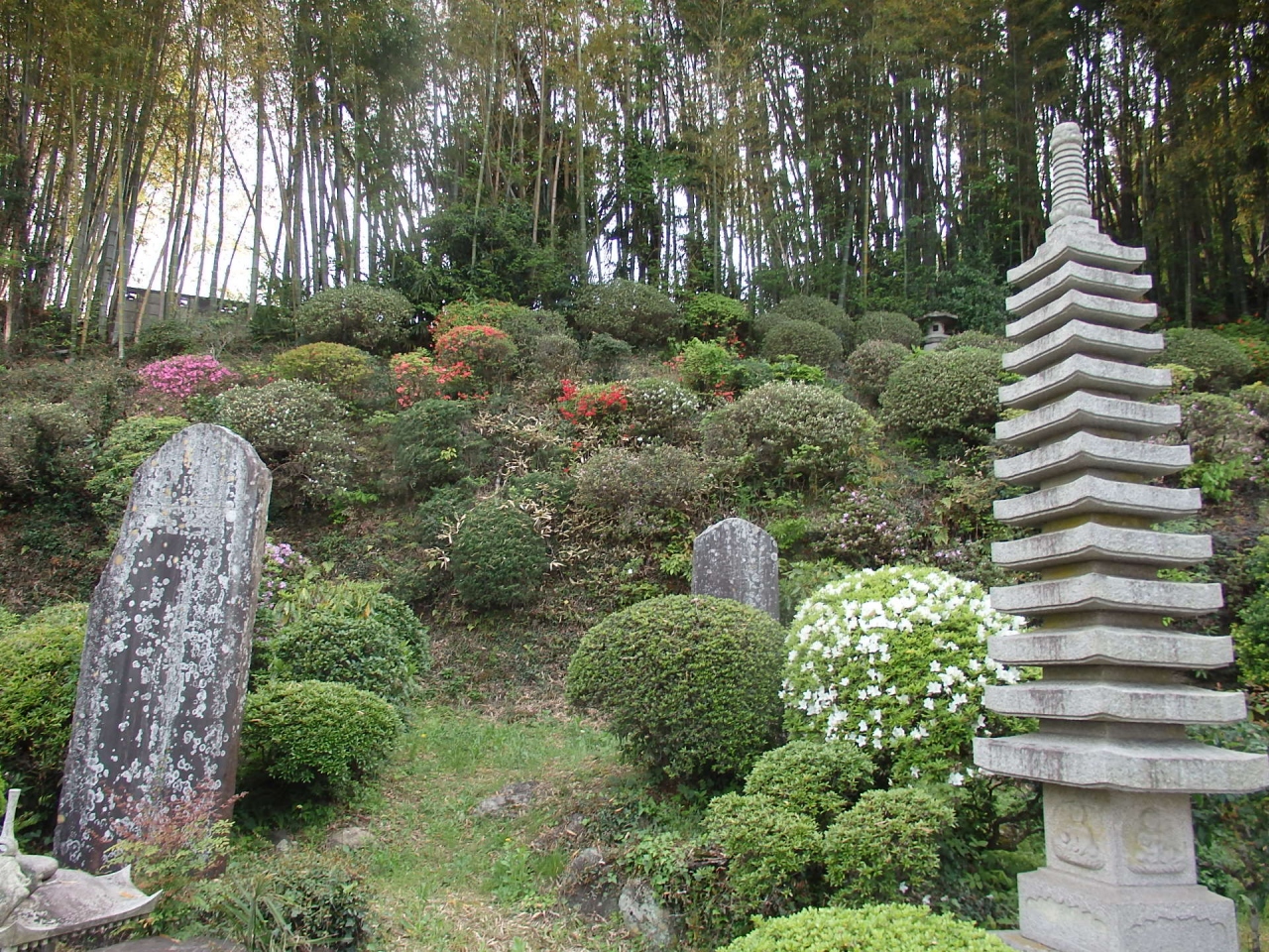 法恩寺は真言宗の一寺で、八世紀行基が開創したといわれる古いお寺です。歴史的には源頼朝や徳川家康等の加護を受けています。また国指定重要文化財の「絹本着色高野・丹生明神像」を始め多くの文化財を持つ由緒ある寺院です。越生七福神の恵比寿天が祀られています。本堂左手には四国霊場御砂場(各四国霊場から拝領した清石が足形の下に奉安されている)があり、ここでお参りするだけで四国霊場をお参りしたのと同じ悲願が達成できるという功徳があります。四国霊場に行くのが無理な方は是非ここで功徳を得てみてはいかがでしょうか。庭ではツツジが咲き始めていましたが、満開時訪れるときれいでしょうね