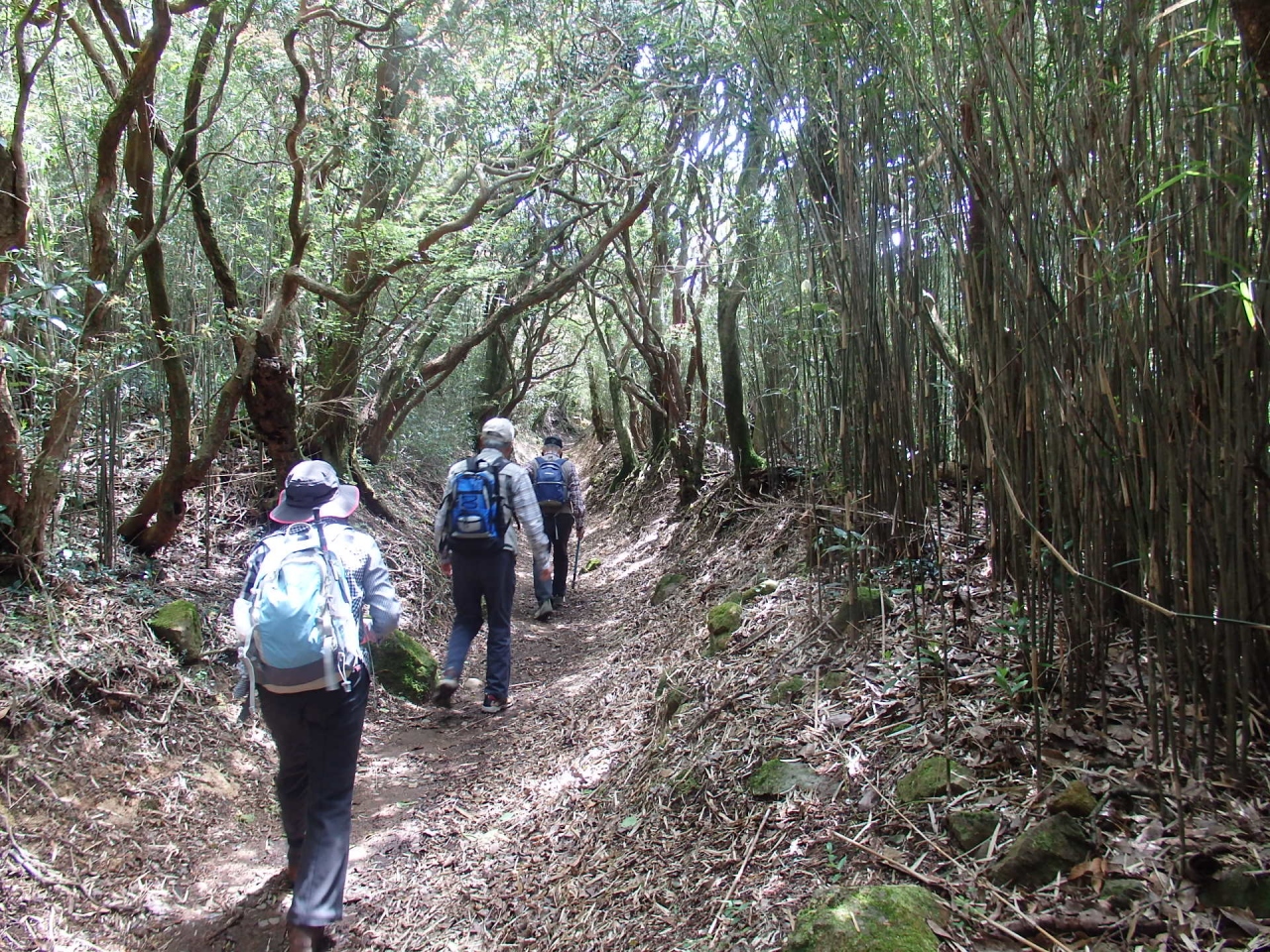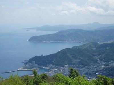今回は横着をして十国峠ケーブルで十国峠に登り十国峠経由で岩戸山に登りました。十国峠から岩戸山への道は緩やかに下り、土の歩き易い登山道ですので疲れは感じません。35丁目分岐からは登りに入り標高差30M程登り25分で岩戸山山頂に着きます。山頂からは南が開け、相模湾、初島、伊豆半島の山々が見られ、気分爽快です。下りはツツジを見るために姫の沢公園に下りました。下るだけでは満足できない方は、姫の沢公園または伊豆山神社から登られたらいかがでしょうか。笹が多いせいか、野花はキランソウ、クサボケ、タチツボスミレ、ナツトウダイ等種類は少なかったのが残念です