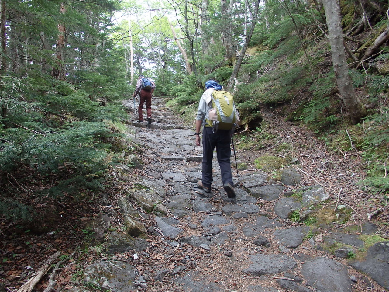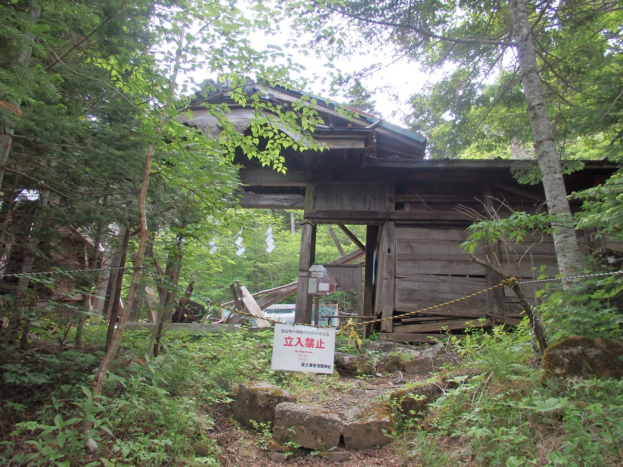 馬返しを出発し、緩やかな登りや若干急な登りの石段、木段を繰り返し、五合目を目指しました。今は富士スバルライン五合目まで車で登り富士登山をしますが、昔、自動車が無い時代には下から歩いて富士山を目指したので各合目には茶屋、小屋、宿屋、社等が多くありました。戦後は衰退し、建物は朽ちるか廃墟になっています。歩き始めて4時間弱、ゴールの富士スバルライン五合目に到着しました。レストハウス、店等建ち並ぶ中、聞こえるのは中国語か韓国語ばかり、ここは日本国内ではない感があります。帰りは路線バスで下りました。昔、多くの人が登った歴史、聖域や厳かさを感じさせまた緑がきれいなコースのハイキングでした。標高差は870M強と大きかったのですが、歩き易い道のためか疲れを感じさせないコースでした