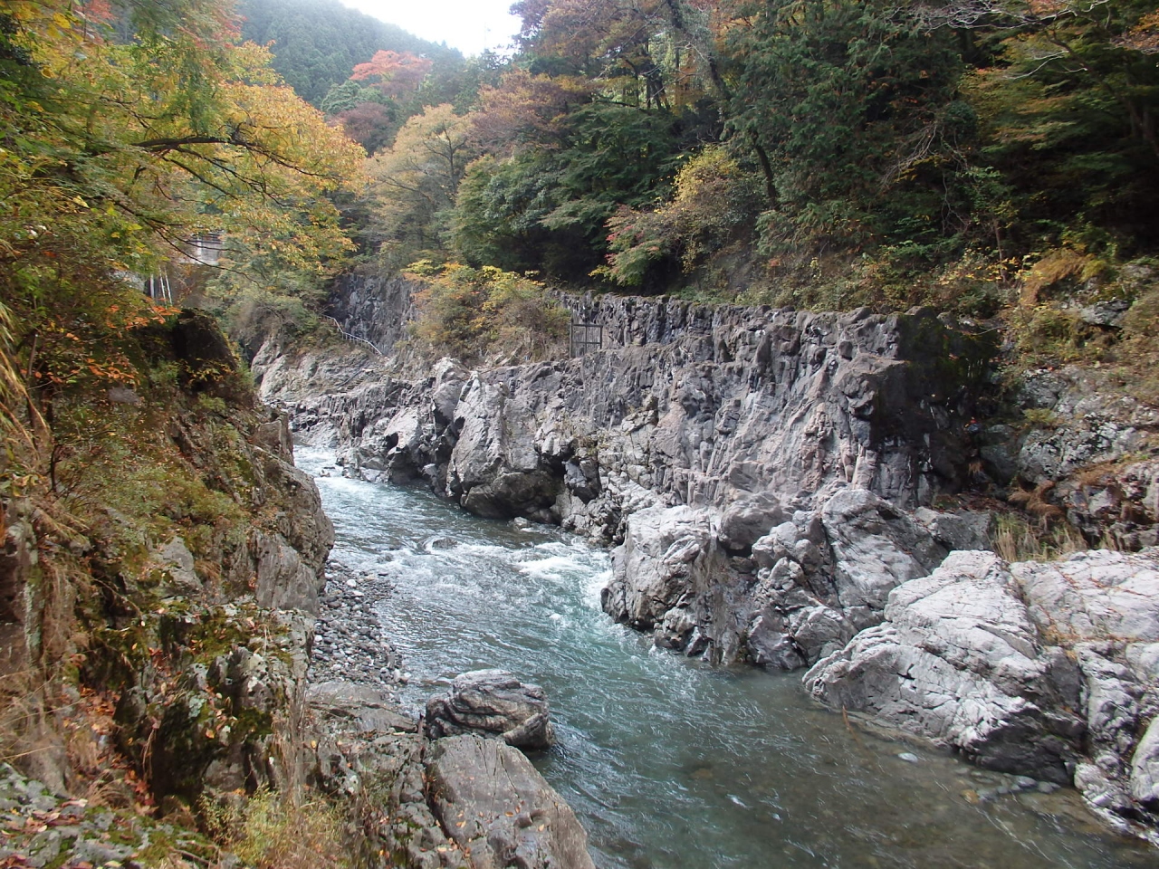 青梅線古里駅から奥多摩駅まで歩きました。特に雲仙橋から白丸ダムの渓谷を鳩ノ巣渓谷と言われています。雲仙橋あるいは白丸ダムの上から見下ろす渓谷は見事です。紅葉、奇岩・巨岩、川の急流等見とれてしまいます。また渓谷沿いに遊歩道が完備されており、小さなアップダウンがあるものの、間近で紅葉や奇岩・巨岩、渓流等が見られまた違った趣があります。釣りをすることもできるようです。紅葉の最盛期に訪れると最高だと思います