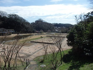 国指定史跡、源頼朝が奥州藤原氏を滅ぼした後、源義経、藤原泰衡、数万人の将兵の鎮魂のために、中尊寺の二階堂(大長寿院)を模倣した大伽藍の永福寺を建てました。発掘調査の結果、阿弥陀堂、二階堂(二階建てから二階堂と言われる)、薬師堂、池、橋、庭園の配置が明らかになり、盛土をして遺跡を保護し、その上に基壇、礎石を再現しています。約200年後、度重なる火災で廃寺となりました。基壇、礎石を基に寺院の壮大さを想像するのも楽しいものです。CGによる復元図をみると池を含めた伽藍の壮大さ、建物の大きさが伺えます