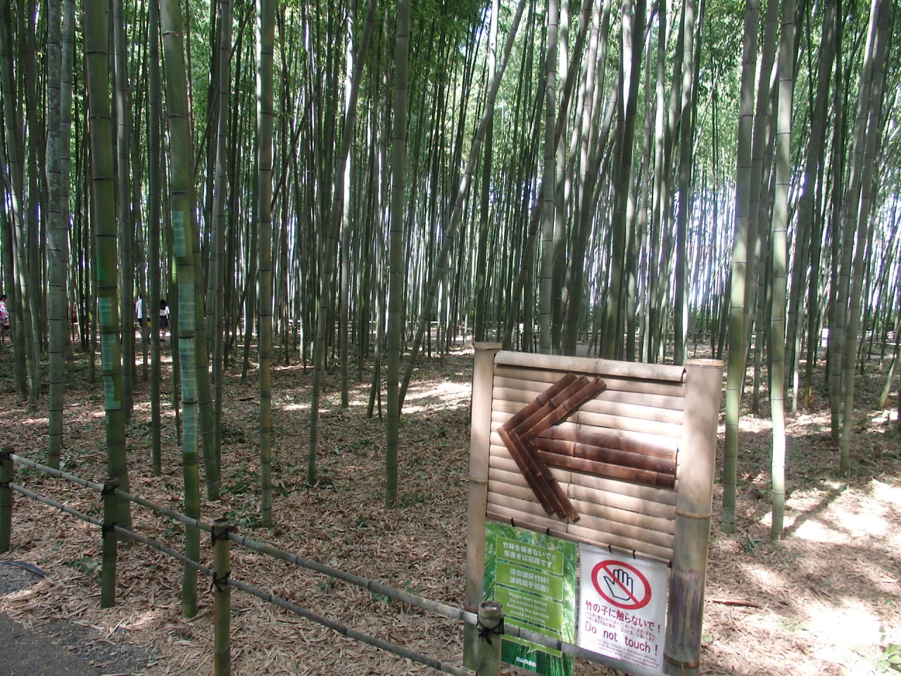 嵯峨野の竹林は野宮神社から大河内山荘まで続く風情のある小道です。テレビドラマやCMに良く登場する京都を代表するスポットです。真夏日であっても涼しさを感じさせる散策道です。野宮神社の竹林から北に行き、JRの踏切を渡るとまた竹林があり、その一角に「竹林の散策路」という新しいスポットができていました。真夏日でも広い青々とした竹林の中を散策するのは気持ちがよいものです。2015年にできたそうですが、2017年4月に竹林を通った時には気がつきませんでした。踏切を北に越えると人は少なくなるので、竹林を歩く場合は野宮神社の方よりこちらの方の人が少ないです