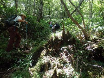 高原山は鶏頂山、釈迦ケ岳、中岳等の総称です。その中の1つ鶏頂山は信仰の山で、山頂には鶏頂山神社が鎮座しています。鳥居のある鶏頂山西口登山口を出発し、弁天沼までは緩やかな登り、弁天沼からは神域できつい登りが続く。歩き始めて2時間23分鶏頂山山頂(1765M)に到着。眺望がよい。来た道を西口登山口まで戻る。本日のコース、標高差は530M、弁天沼から山頂までは急な登りはあるものの、登山道全体が歩き易い登山道であること、樹木で覆われ直射日光が当たらず、真夏にしては疲れを感じさせない山行でした。ただ野花は数種類のみしか見られなかったのは残念でした