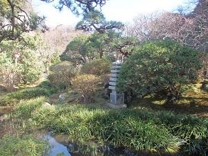 昭和4年に建てられた華頂博信侯爵邸の西洋建築です。現在は鎌倉市が取得し国指定有形文化財に登録されています。木造三階建てで、銅葺き屋根を持ちます。寄付金を募金箱に入れ、裏のフランス式庭園に入ります。庭園は整備されていて、広い芝生庭園、アジサイ、紅葉、特にバラの木が多く植えてありましたが、今は何も咲いていません。それぞれの花が咲けば見事な庭が見られるのでしょう。邸の中は春、秋に一般公開されているようで常時は非公開です。花の季節に来たいものです