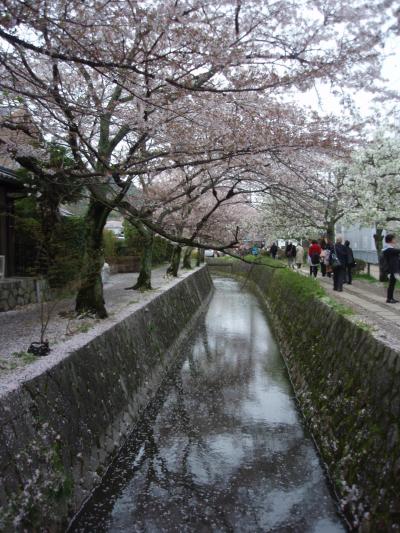 散ったサクラの花ビラが哲学の道沿いの疎水の川面を覆いきれいですよ