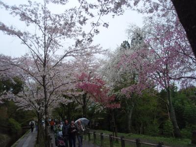 古くから桜の名所として知られ「花の寺」と呼ばれている勝持寺を訪れる。阿弥陀堂、瑠璃光殿付近のソメイヨシノは終了していたが、枝垂れサクラ、西行桜(この寺で出家した西行法師が植え、愛でた桜)が満開できれいである。感動します。実物をご覧あれ。