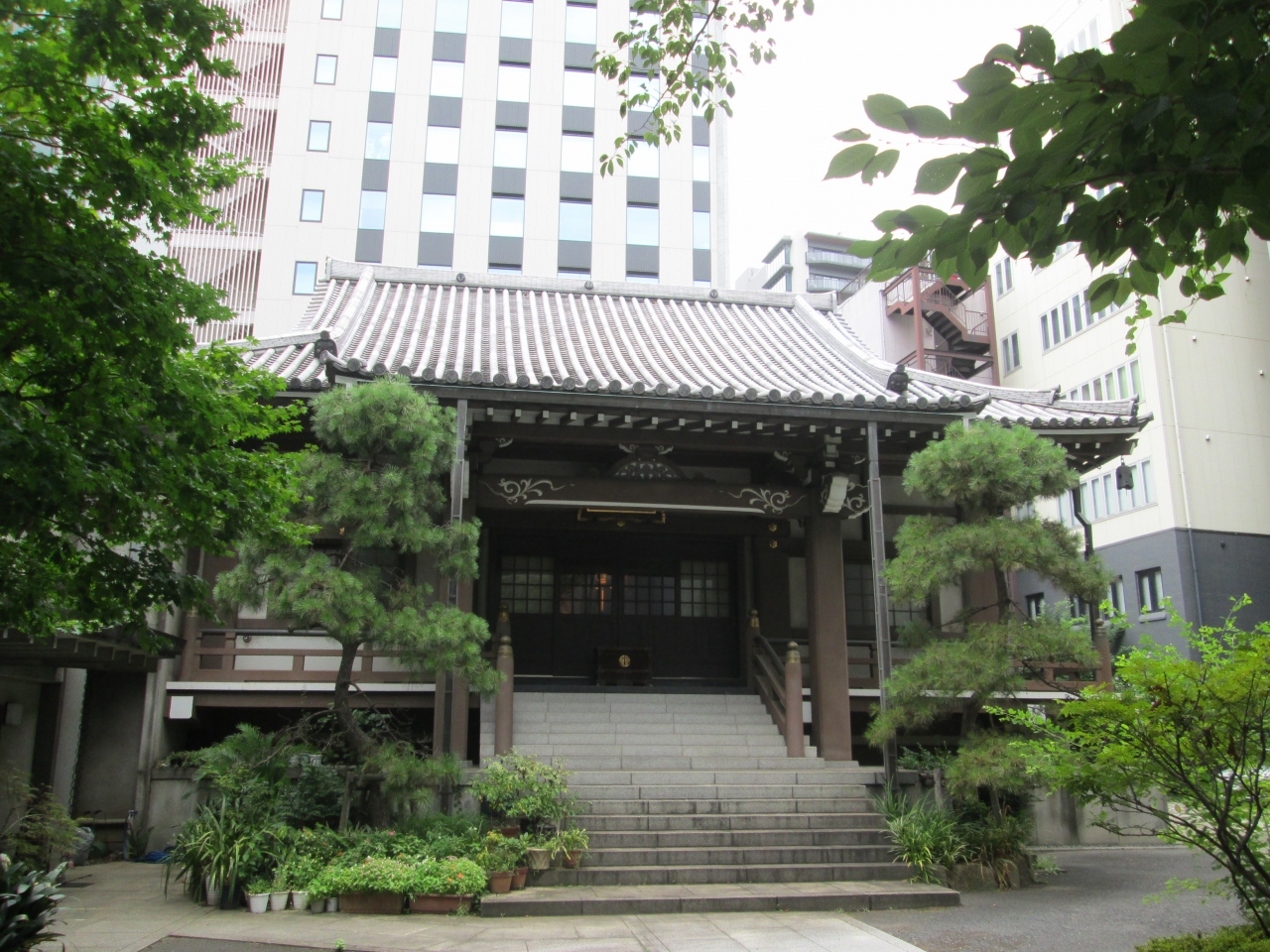 臨済宗南禅寺派の一寺、創建は1619年、開基は徳川家康、開山は以心(金地院)崇伝和尚、本尊は聖観世音菩薩像です。山門を通ると正面に鉄筋コンクリート造の本堂、水子地蔵、堂宇があります。墓群の中に立派な盛岡・八戸藩南部家藩主の石塔が多くあります。墓の囲い塀が数か所は壊れており、メンテナンスされていないように見えます。崩壊したものは、かたづけられているので安全は保たたれているようです。コンクリート造の本堂ですが、唐破風の屋根を模した本堂正面がユニークです