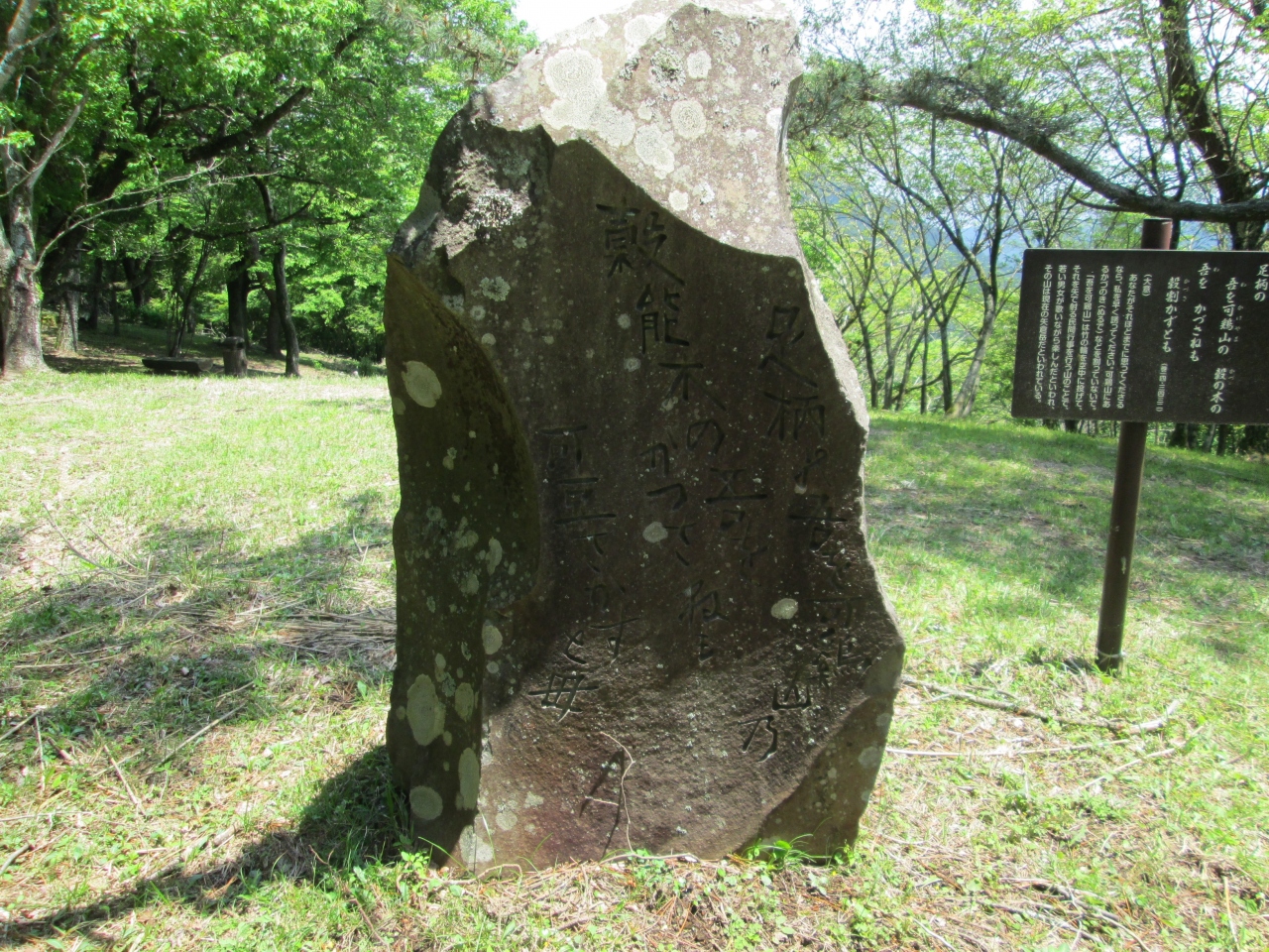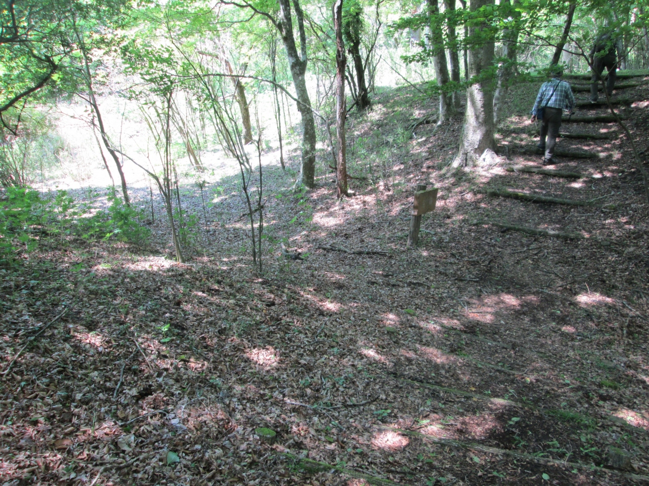 バス停から旧古楢尾道を登ります。足柄万葉公園手前の約40分の木の根道の急登り以外は緩やかな登りの歩き易い道です。歩き始めて1時間34分足柄万葉公園(標高790M、本日の最高点で、地蔵堂との標高差375M)に到着しました。都市公園とは異なり遊具等は無く、万葉集に出てくる足柄を歌った詩の石碑や、木の詩歌碑が建っています。緑が綺麗な細長い遊歩道になっていて(足柄峠まで45分の行程)散策するには良い所です。公園内にある、本日の目的の一つ古楢尾砦を探したのですが残念ながら分かりませんでした 。付近には足柄城址、聖天堂、足柄の関跡、一里塚跡、足柄明神社跡、新羅三郎義光の吹笙の石等見るものは多くあるので、併せて見ることをお勧めします