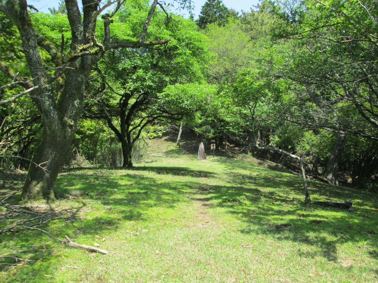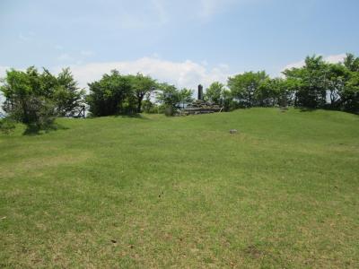 バス停から旧古楢尾道を登り、足柄万葉公園手前の約40分の木の根道の急登りを凌ぎ、万葉公園を経て、歩き始めて2時間20分足柄峠(標高759M)に到着しました。足柄峠城址公園は足柄峠という標識の裏に石段があるので、これを登った先にあります。直ぐに足柄城址本丸跡があり、ここを中心として足柄城跡を整備して作られた公園です。城址としての遺構堀は切、郭、井戸跡、空堀、土橋跡が見られます。本丸跡には足柄城址石碑、足柄公園石碑、休憩舎がたっています。二の郭跡は展望所になっており、富士山あるいは愛鷹山、箱根の山山が見られます。本日は霞んでいて残念ながら富士山は見られませんでした。本丸跡に続き二の郭、次、三、四、五郭が続きます。各郭間に堀切や空堀が見られます。5点満点で3点(私見)位の城址です。お城ファン、山ファンには見逃せない公園です