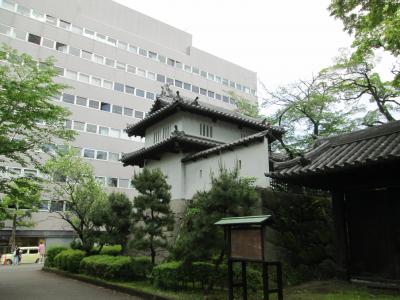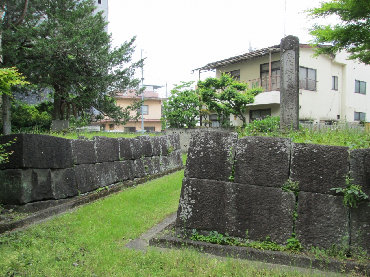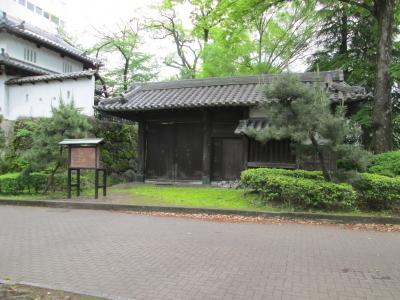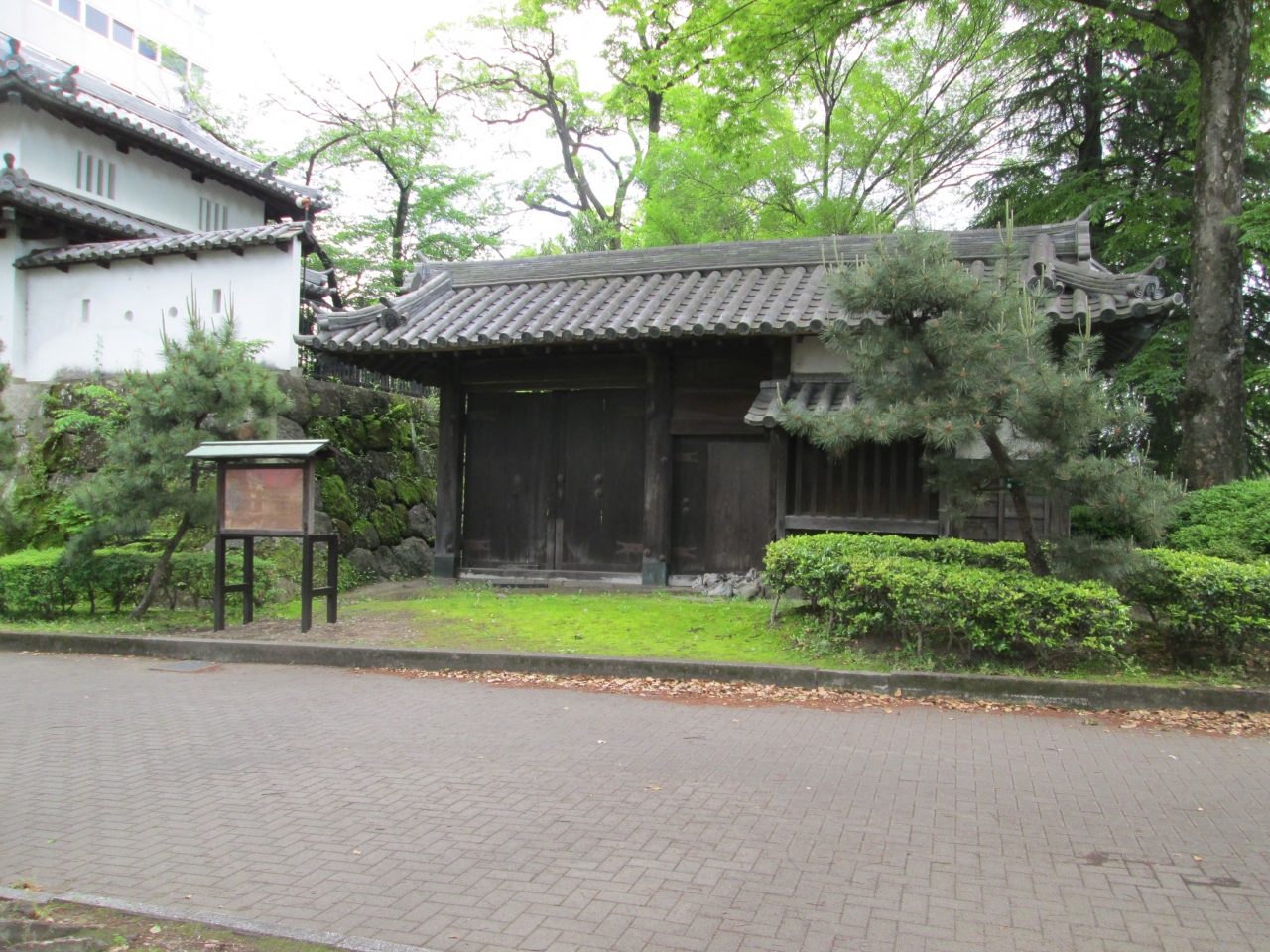 前橋城で、数少ない重要な遺構として残っている一つです。外郭から城内に入る重要な門です。最初は冠木門でしたが、第四代藩主酒井忠清の代に渡櫓門に建て替えられました。昭和に入り門の間隔は狭められました。石垣の上に石碑が建っています。石垣に積み方は石垣の横目が一直線になってかつ石同志の接合面にほぼ隙間の無い、布積み・切込み接ぎになっています。他方臨江閣で見た移設石垣の横目は通っていますが、石の大きさ異なる布積み・打込み接ぎです。県庁付近で見られる石垣は布積み・切込み接ぎになっていますが、こちらは近代に築垣されたものだと思います。築垣の時代が異なるのでしょうか?なぞです
