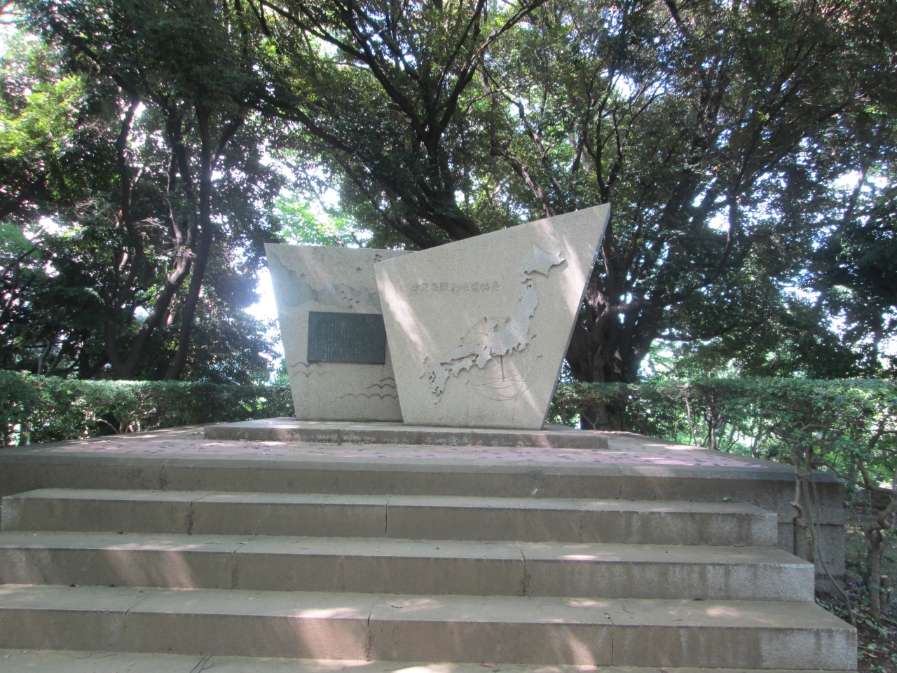 全長106M、五世紀築造の都内最大級の芝丸山前方後円墳の頂は削られて公園になっており、そこに伊能忠敬測居地遣功表が建っています。明治22年、日本地学協会が日本地図を作った測量の先駆者伊能忠敬の功績を顕彰して建てられました。戦災で失われたために、昭和40年に再建されています。日本地図が浮き彫りされて描かれていますが、何故か北海道北部には点線が入っています。北海道地図は間宮林蔵が作ったとも言われており、伊能忠敬の北海道地図は不正確であったのかもしれません。遣功表を目的に見に行く程のスポットではありませんが、芝丸山古墳、平和の灯、芝東照宮等とあわせて訪れると良いと思われます