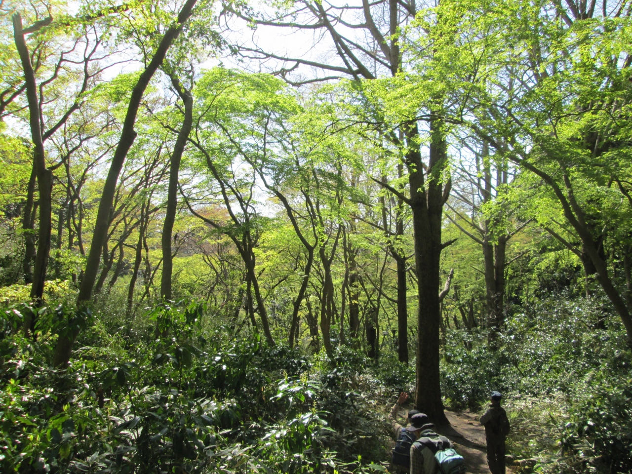 六年前には建長寺から天園を通り、瑞泉寺に降りましたが、今回は金沢文庫駅の六国峠ハイキングコース入口から天園を通って永福寺跡に降りました。前半は、道中桜の花、地面に咲く野花が多く見られ、満足できるコースでしたが、天園付近では花はあまり見られませんでした。六年前に最高点(159.4M)にあった峠の茶屋が無くなっていたのには驚きました。何か不都合があり撤去されたようです。獅子舞谷の青いモミジは綺麗でした。紅葉の秋には是非来たいと思いました