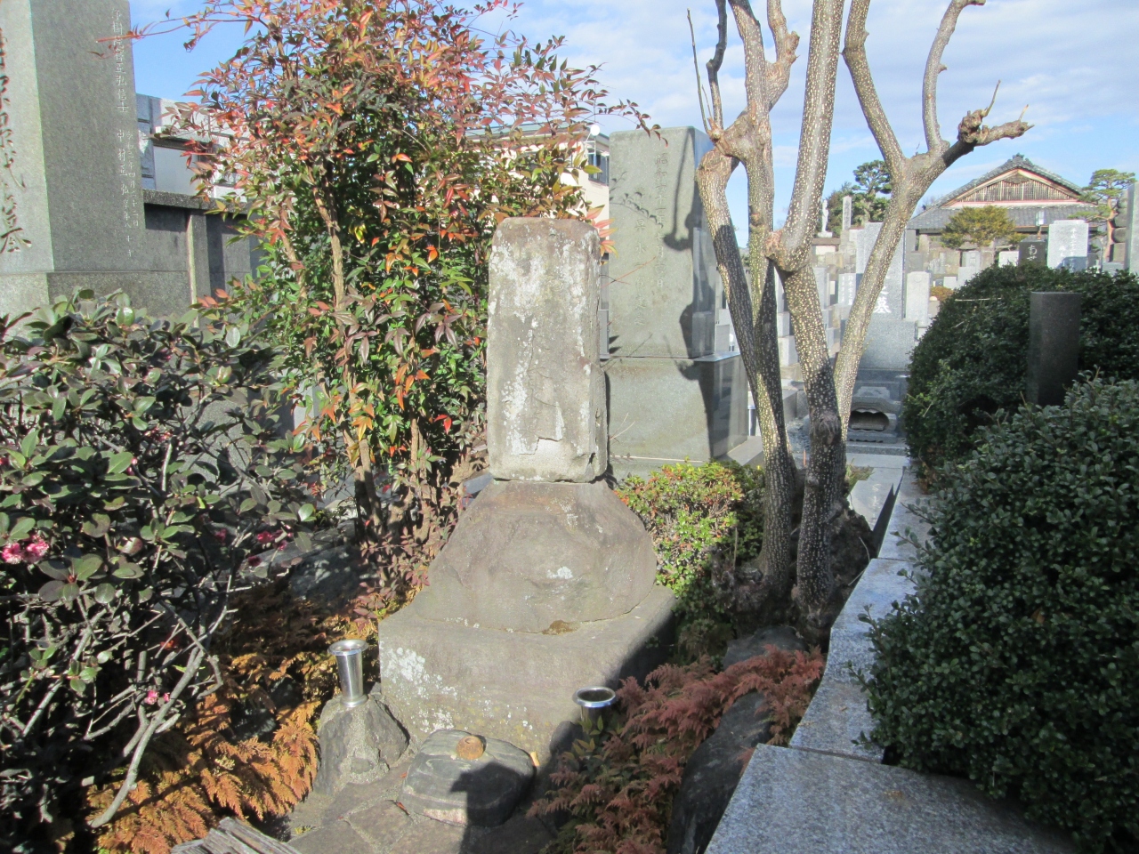 浄土真宗本願寺派の一寺、創建は不詳、鎌倉時代初期、開山は親鸞聖人の弟子の菅原正円(北条経時の家臣でその後出家)、本尊は阿弥陀如来像です。烏山寺町を構成する26ケ寺の一寺です。創建地は伊勢国ですが、その後八丁堀に移転、更に関東大震災後、1927年現在地に移転する。山門を通ると、右正面に形が素晴らしい松の木が目に入ります。左正面にはどっしりした大きな本堂があります。墓地には人情本(恋愛もの)・艶本作者為永春水の墓があります。上部は風化して読めませんでしたが、永春水墓はかろうじて読めます。墓の場所もなかなか見つけられませんでした