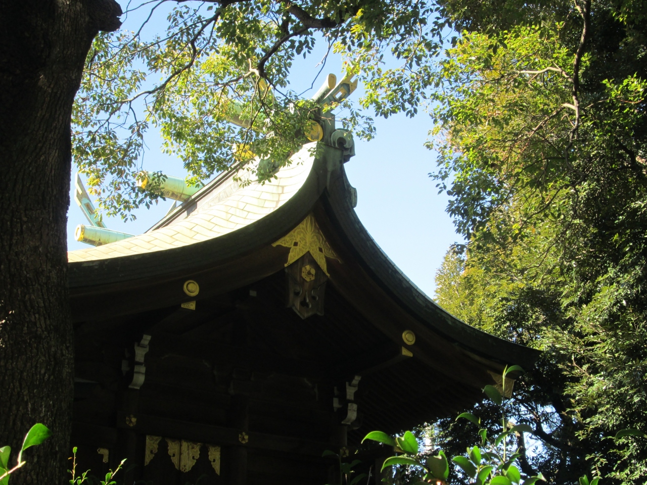 創建は1182年、千葉神社の前身金剛授寺の境内に勧請された菅原道真公をご祭神とする御社で、千葉神社の境内社です。この社殿は御本社の千葉神社の旧拝殿・本殿を用いています。境内社の社殿としては立派で、煌びやかな御本社な社殿よりも、こちらの方が厳かさを感じて、私は好きです。また本殿の屋根の反りかえりも見事で、思わず見とれてしまいました