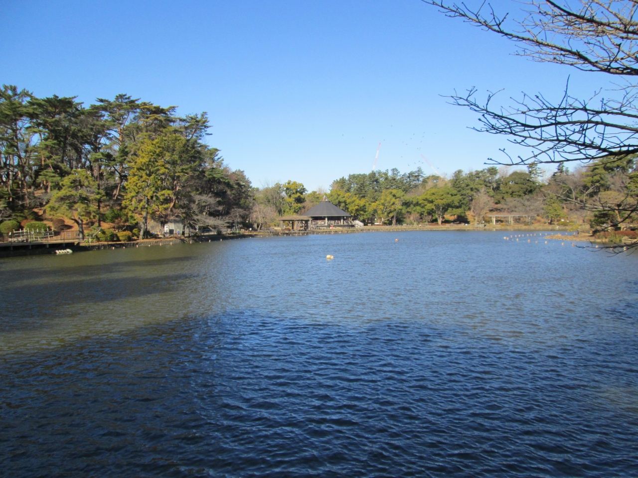 つ蓮華亭では蓮に関する展示がされています。ボートも無く花も無い冬の今、ジョギングす