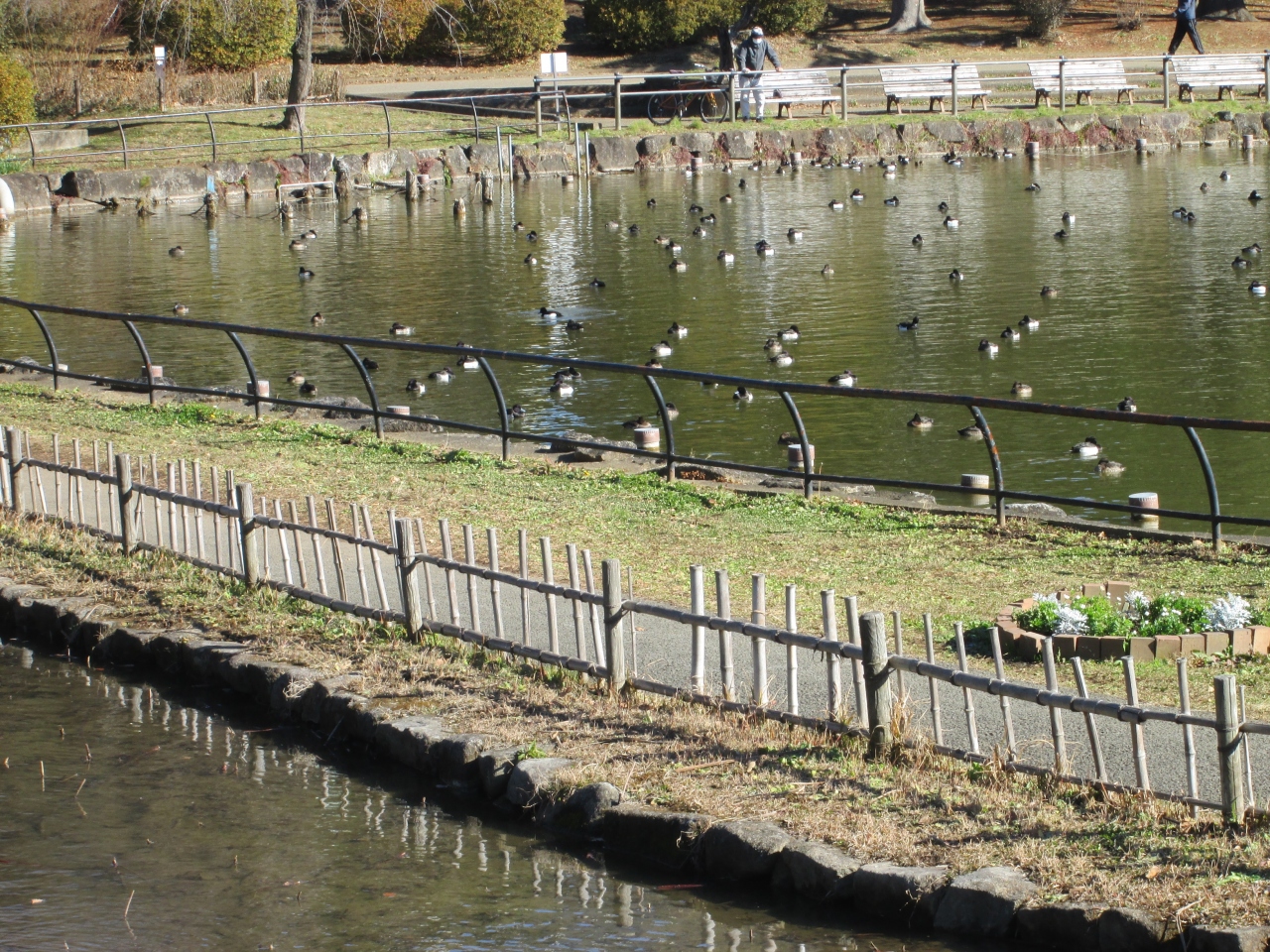 る人、散歩する人をちらほら見る程度です。池には鴨が多く浮かんでいますが、三脚を建て