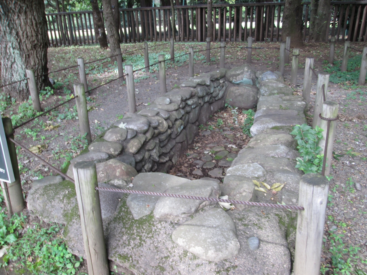 瀬戸岡一号古墳は江戸東京たてもの園の中にあります。秋留台地北縁の点在する古墳群の中の一つで、七世紀後半の古墳で、河原石を用いた地下式横穴の石室で墳丘は殆んど見られないのが特徴です。一号墳からは刀、鉄鏃、土師器、甕等が出土しています。都心に近い郊外は宅地開発が続き、このような史跡が失われつつある中で、一基だけでも移築し、後世に残すことは貴重なことだと思います。崖などに横穴を掘ったものや墳丘の古墳は見たことがありますが、地下式の古墳は初めて見ました